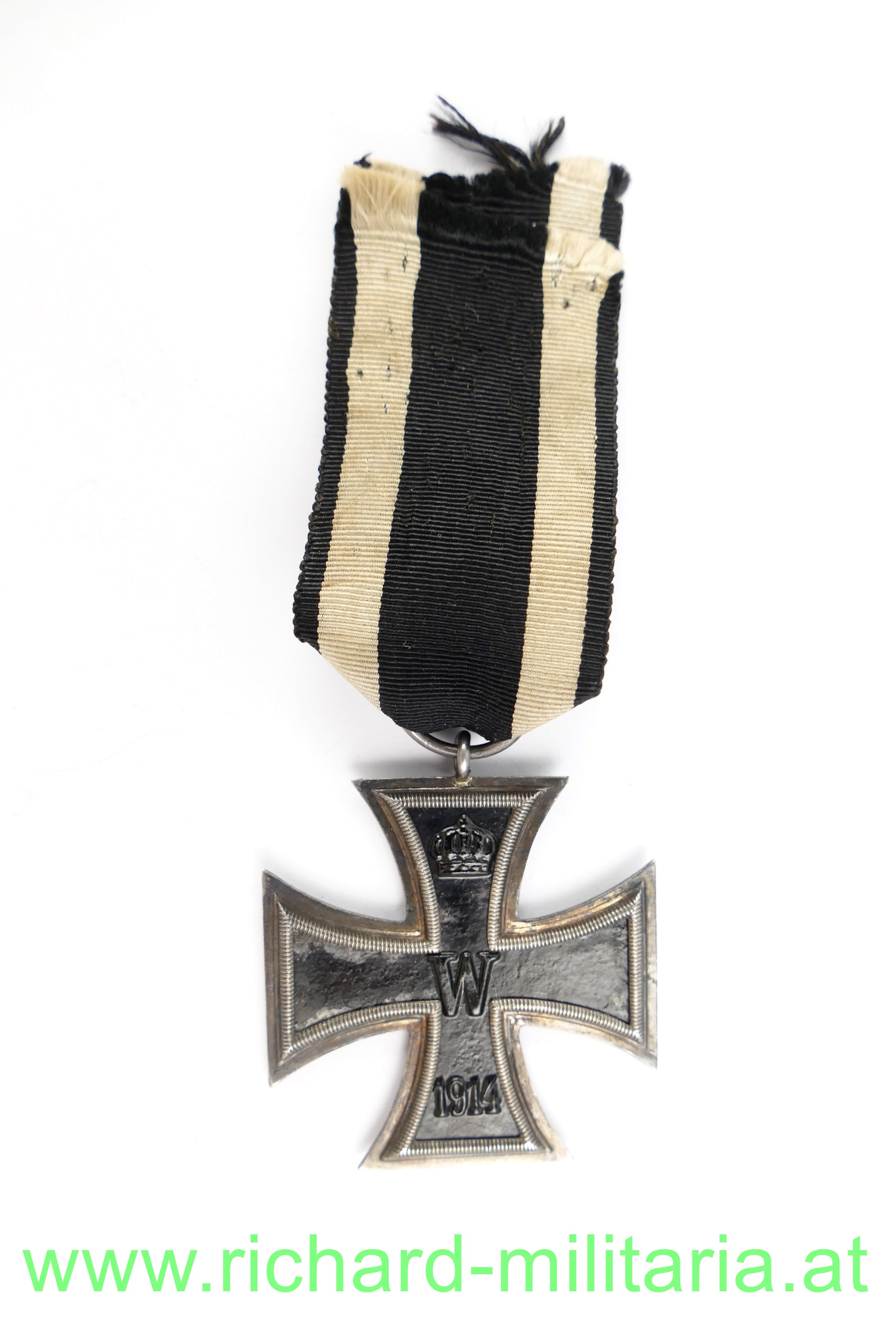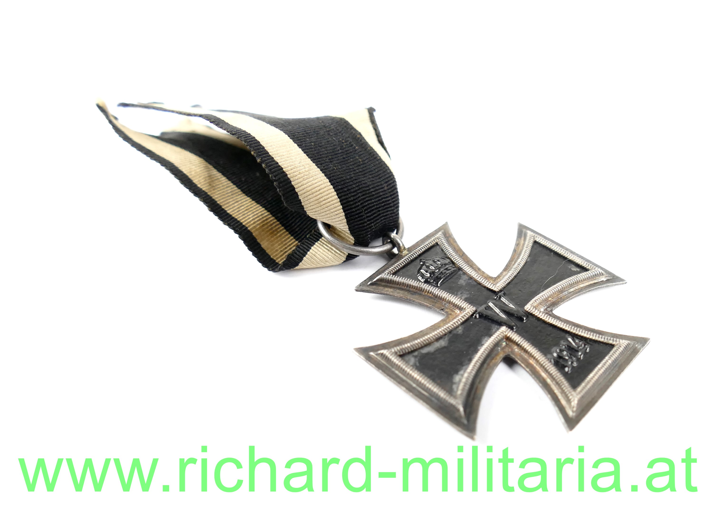 Eisernes Kreuz II. Klasse 1914 "925"; flache Form mit magnetischem Kern; mit Punzierung "925" am Ring;mit originalem Bandabschnitt;