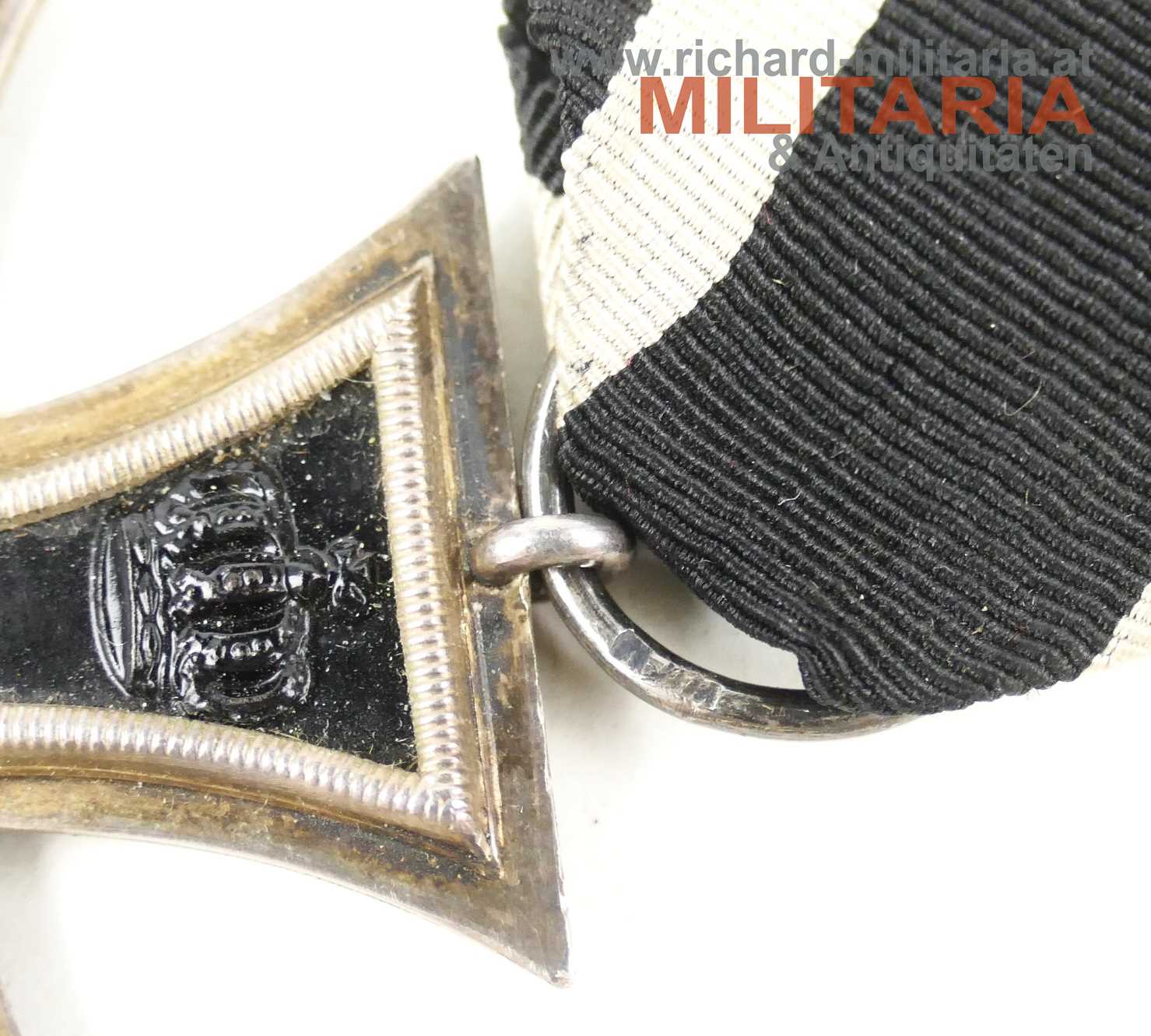 Eisernes Kreuz II. Klasse 1914, Silberzarge, magnetischer Eisenkern, undeutlicher Hersteller "Wilm" (??) im Ring - perfekter Zustand! Originales Band.