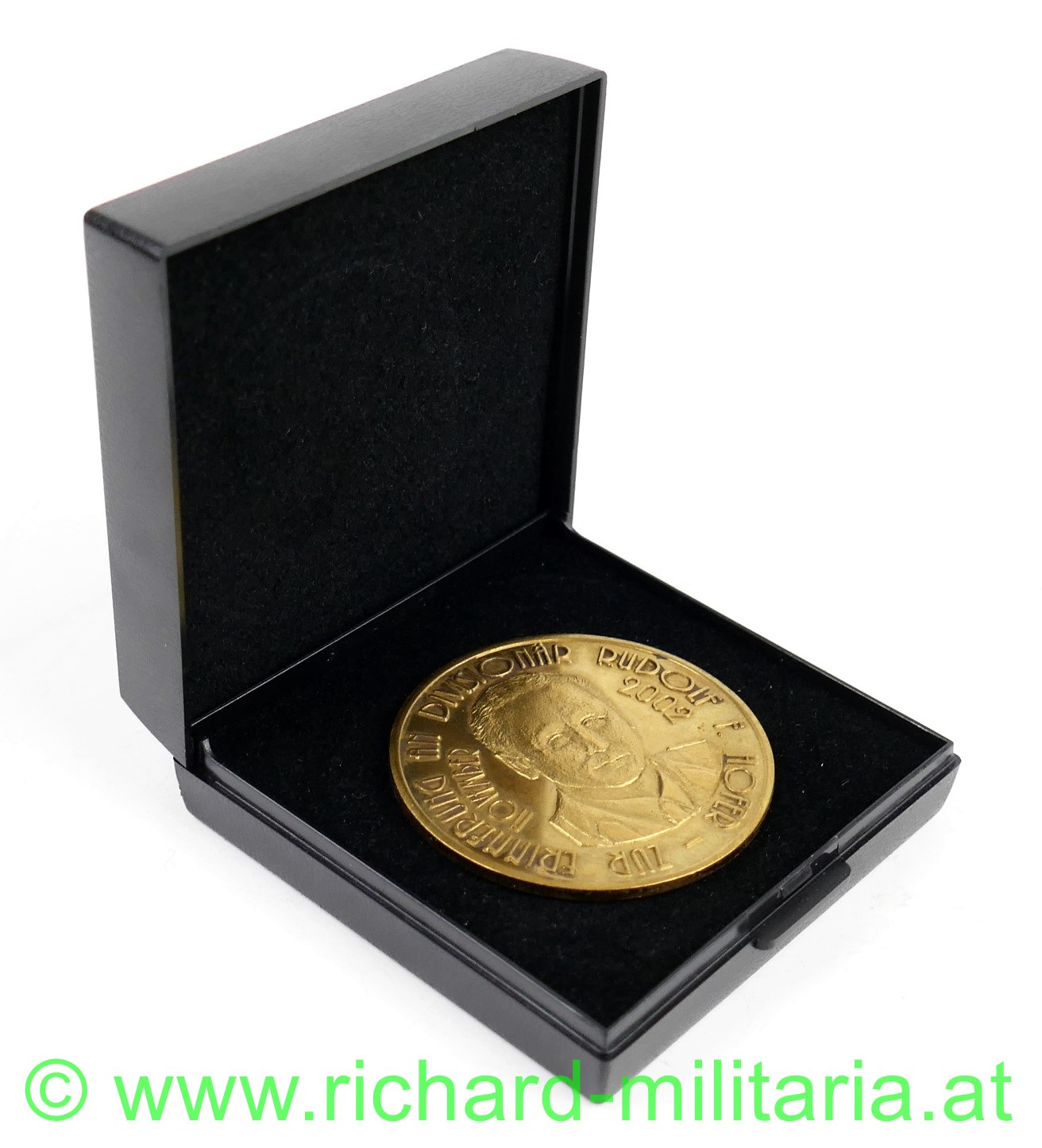 Erinnerungsmedaille Divisionär Rudolf F. Hofer - AWT im Etui, Tombak vergoldet