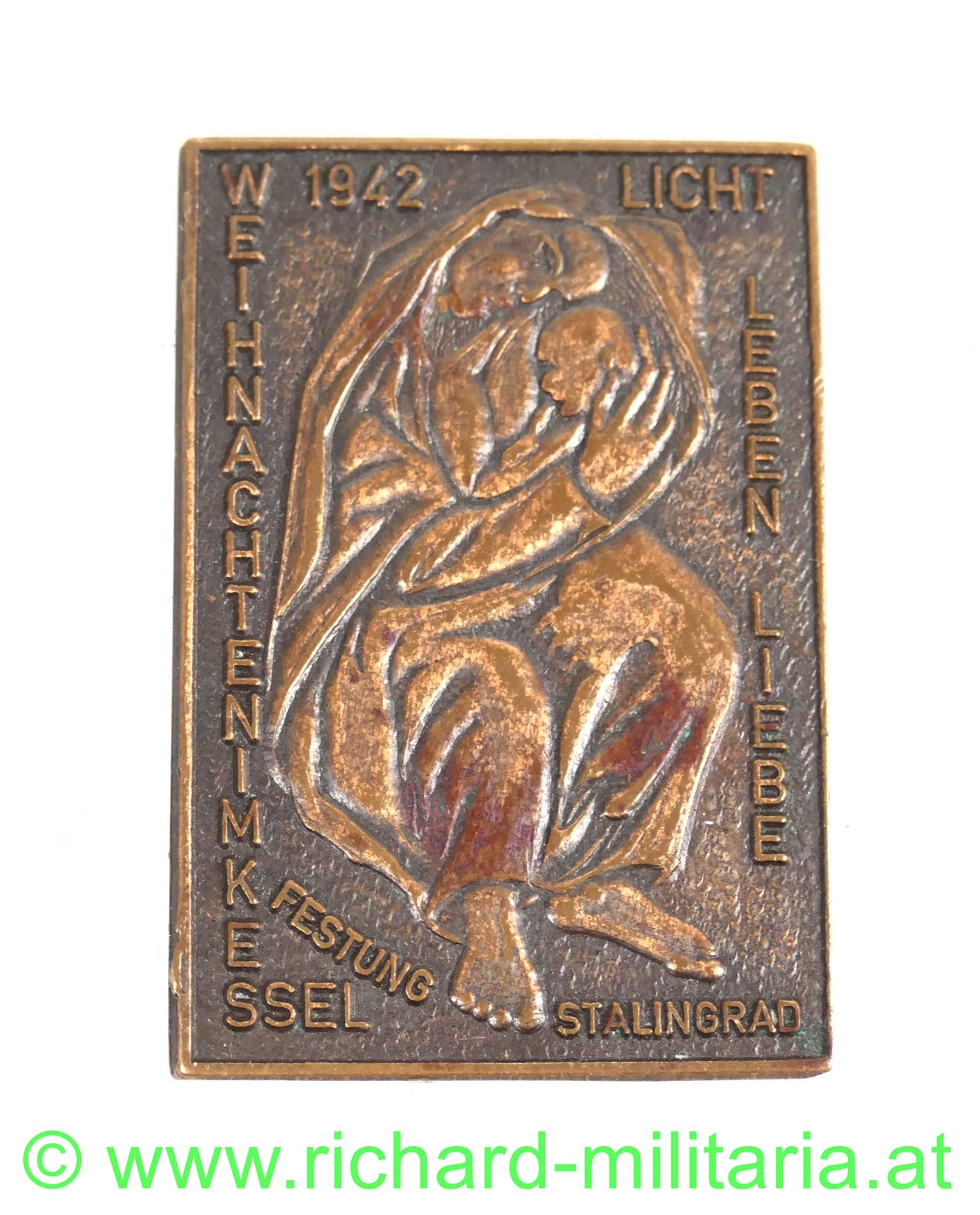 Festung Stalingrad - Weihnachten im Kessel 1942, Erinnerungsplakette, Bronze, 43 x 30 mm; guter Zustand