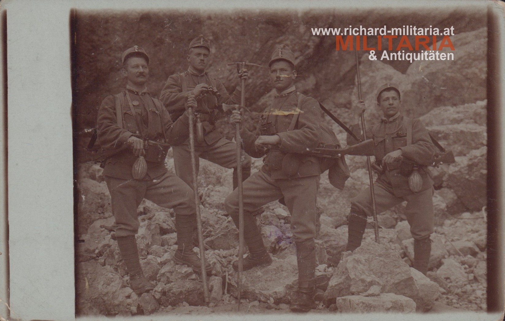 Foto 4 Soldaten mit Gebirgsausrüstung - "K.u.k. Türkeifeldhaubitz Batterie Nr. 6"
