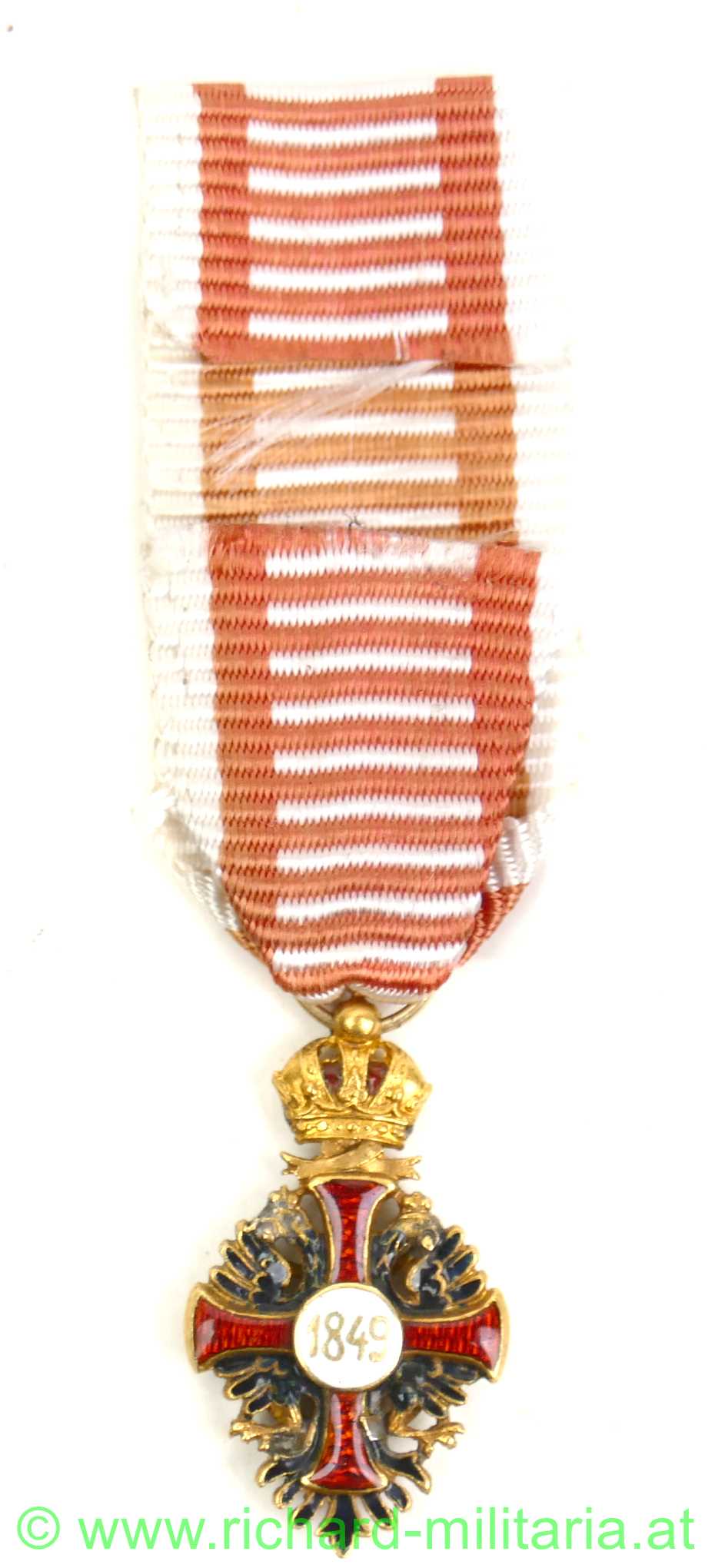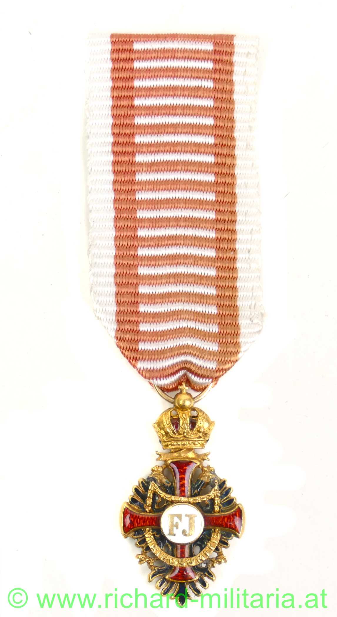 Franz Josef Ritterkreuz - Miniatur, GOLD unpunziert und emailliert, unbeschädigt; Seidenband nicht zeitgenössisch,