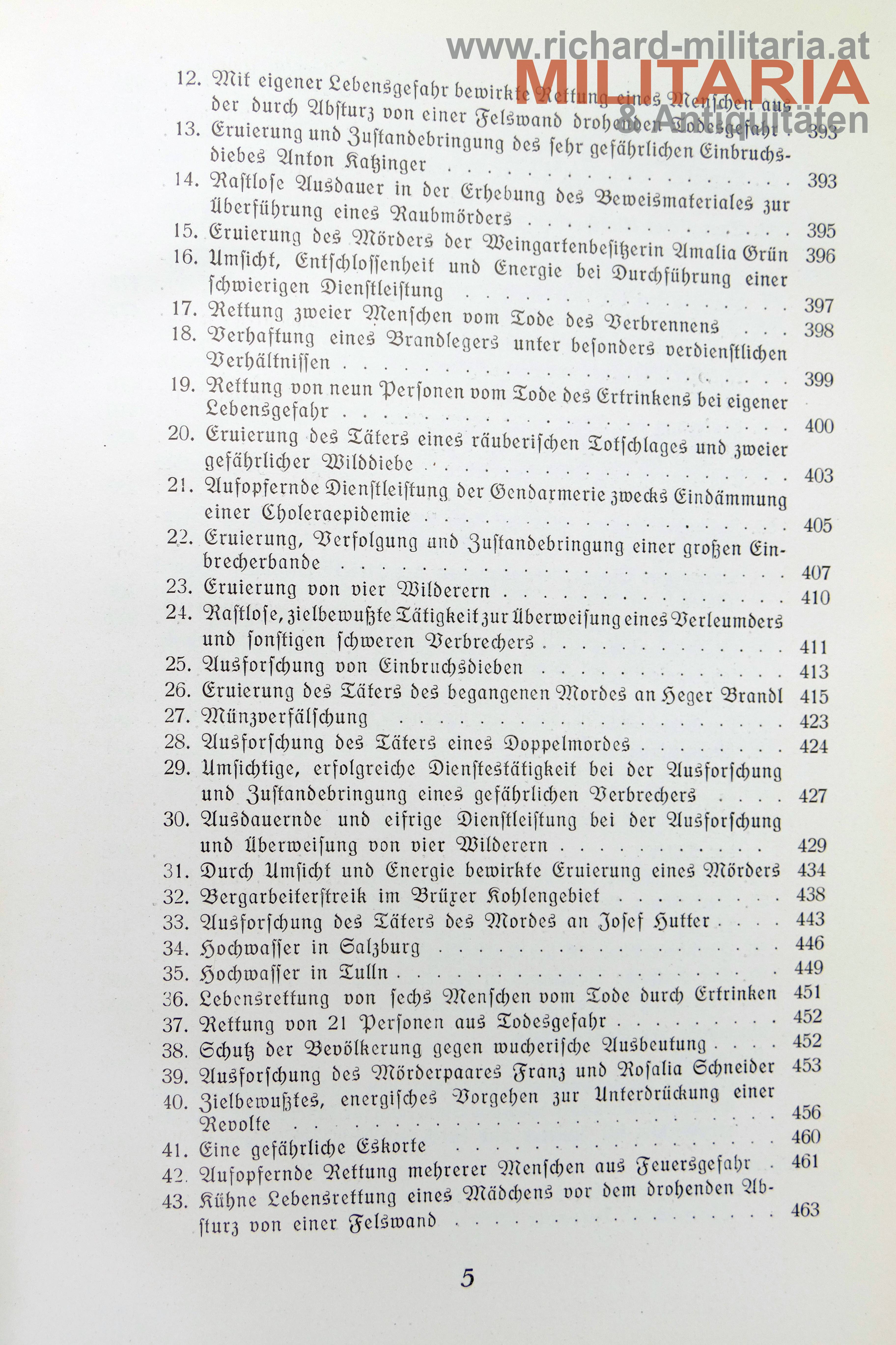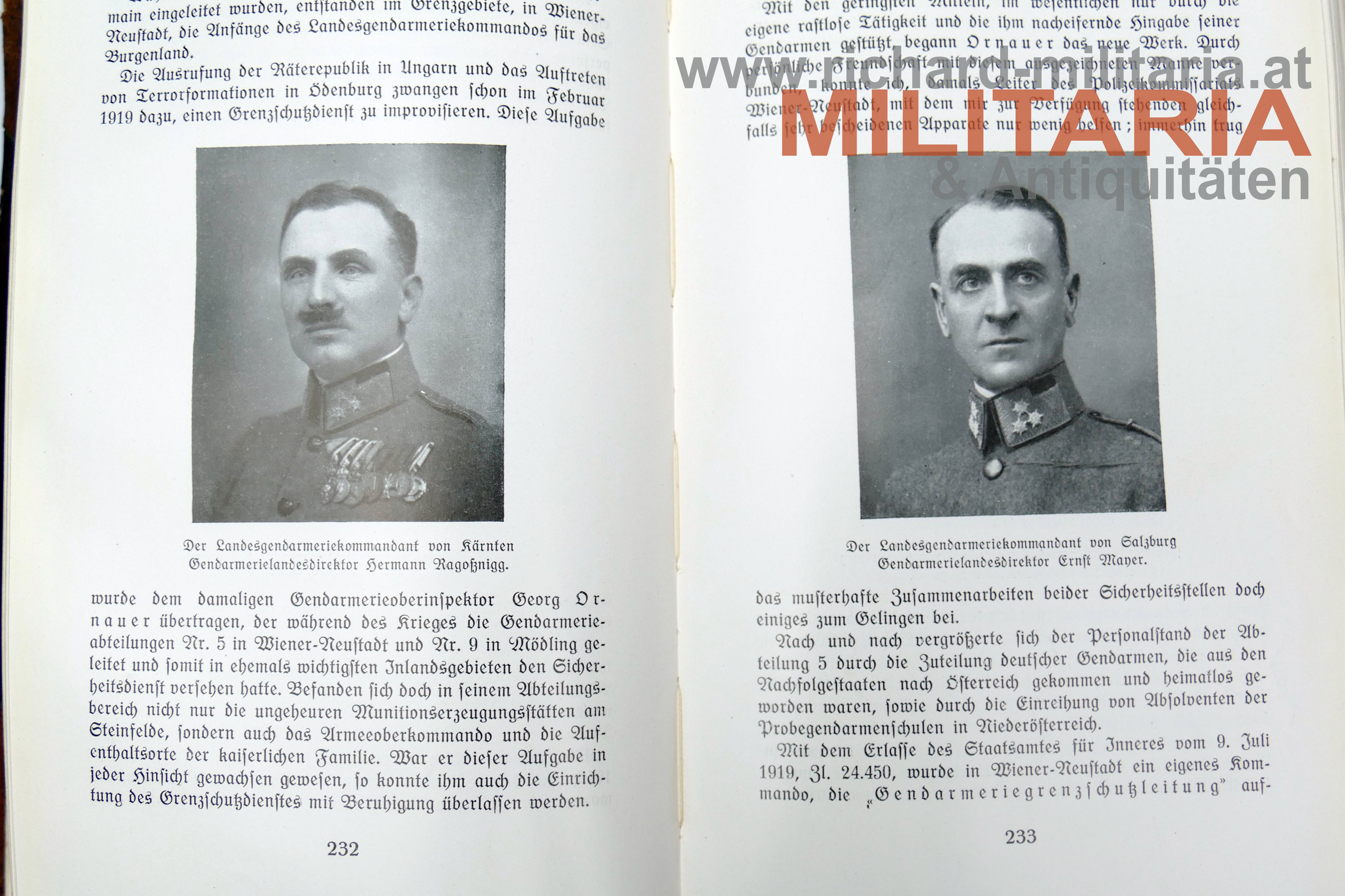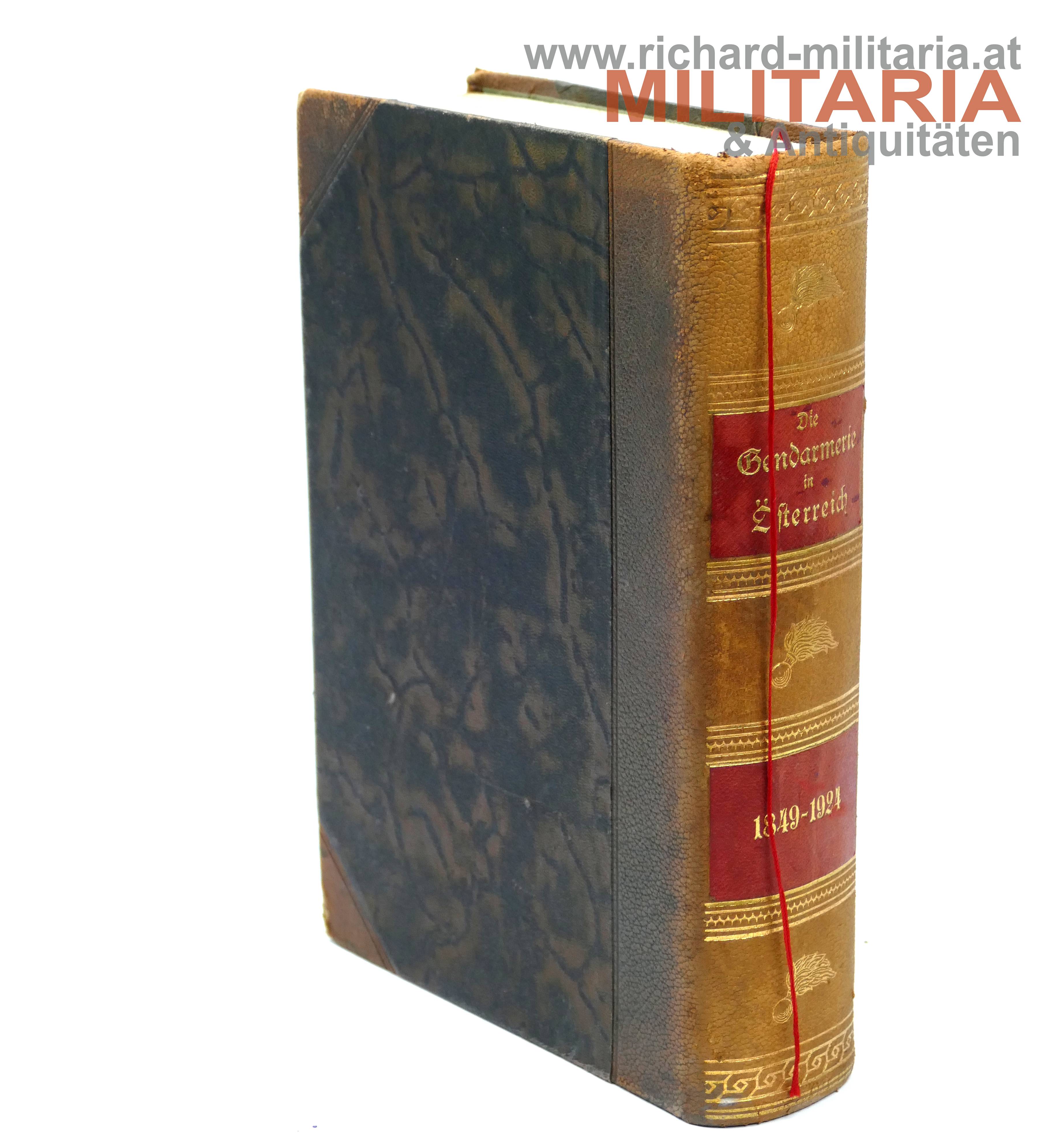 Gendarmerie in Österreich 1849-1924; teilweise in Leder gebunden, von Franz Neubauer, 16 Farbdrucktafeln und zahlreiche S/W Abbildungen im Text; 600 Seiten; Gendarmerie-Jubiläumsfonds, Wien, Hofburg; Vorzugsausgabe nummeriert: "757", vollständig, alle Seiten vorhanden;