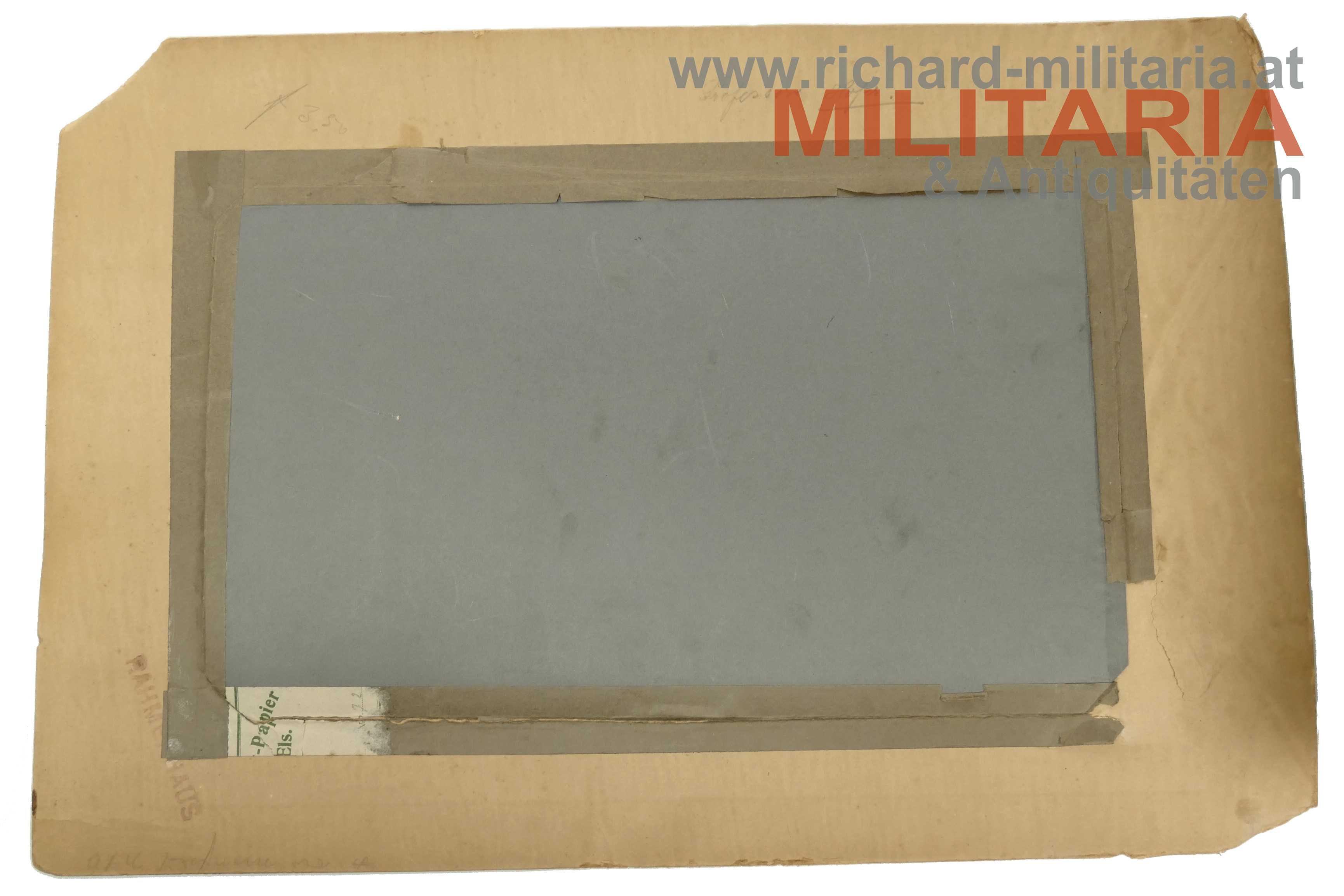 Gruppenfoto österreichisch-ungarischer Offiziere/Beamte - Triest; originales Foto von einer Gruppe Offizieren/Beamten - 18 Personen mit unterschiedlichen Uniformen und Rängen - die meisten mit Säbel, Bild ist in einem Passepartoutrahmen fixiert, das Passepartout am oberen rechten Rand beschädigt, Aufnahme dürfte aus Triest stammen, da der Name und die Adresse des Fotografen am Passepartout aufgedruckt ist: "E. Manenizza, Trieste, Piazza Della Borsa 7" - hier dürfte es sich um einen bekannten Triester Fotografen aus dieser Zeit handeln;