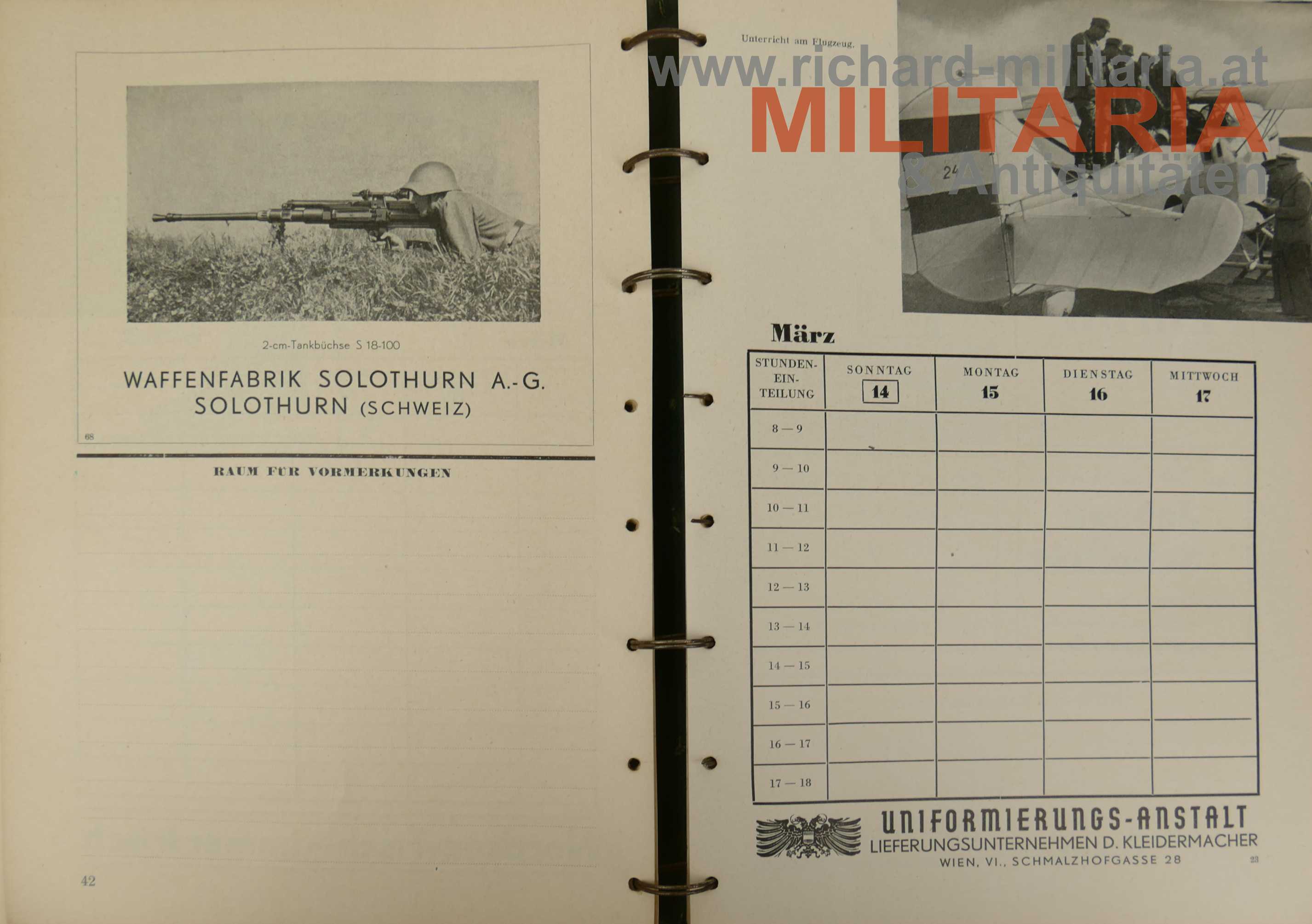 Handbuch der Bewaffneten Macht mit dem österr. Militärkalender 1937; Einband in dunkelgrüner Lederoptik gebundenes Handbuch und Österreichischer Militärkalender mit Ringketten-Bindung - 2 Spiralen defekt, originale Rechnung beiliegend (!), vollständig