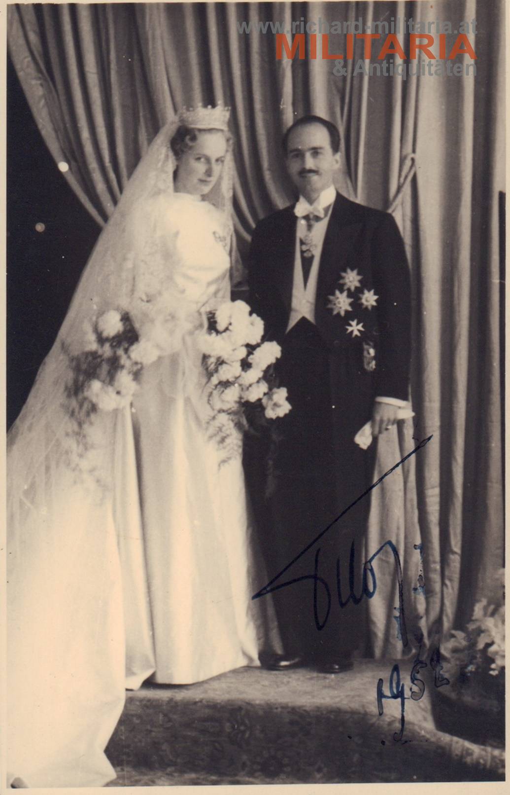 Hochzeitsfoto - Otto von Habsburg mit Originalunterschrift "OTTO"; datiert 1952; Postkartenformat;