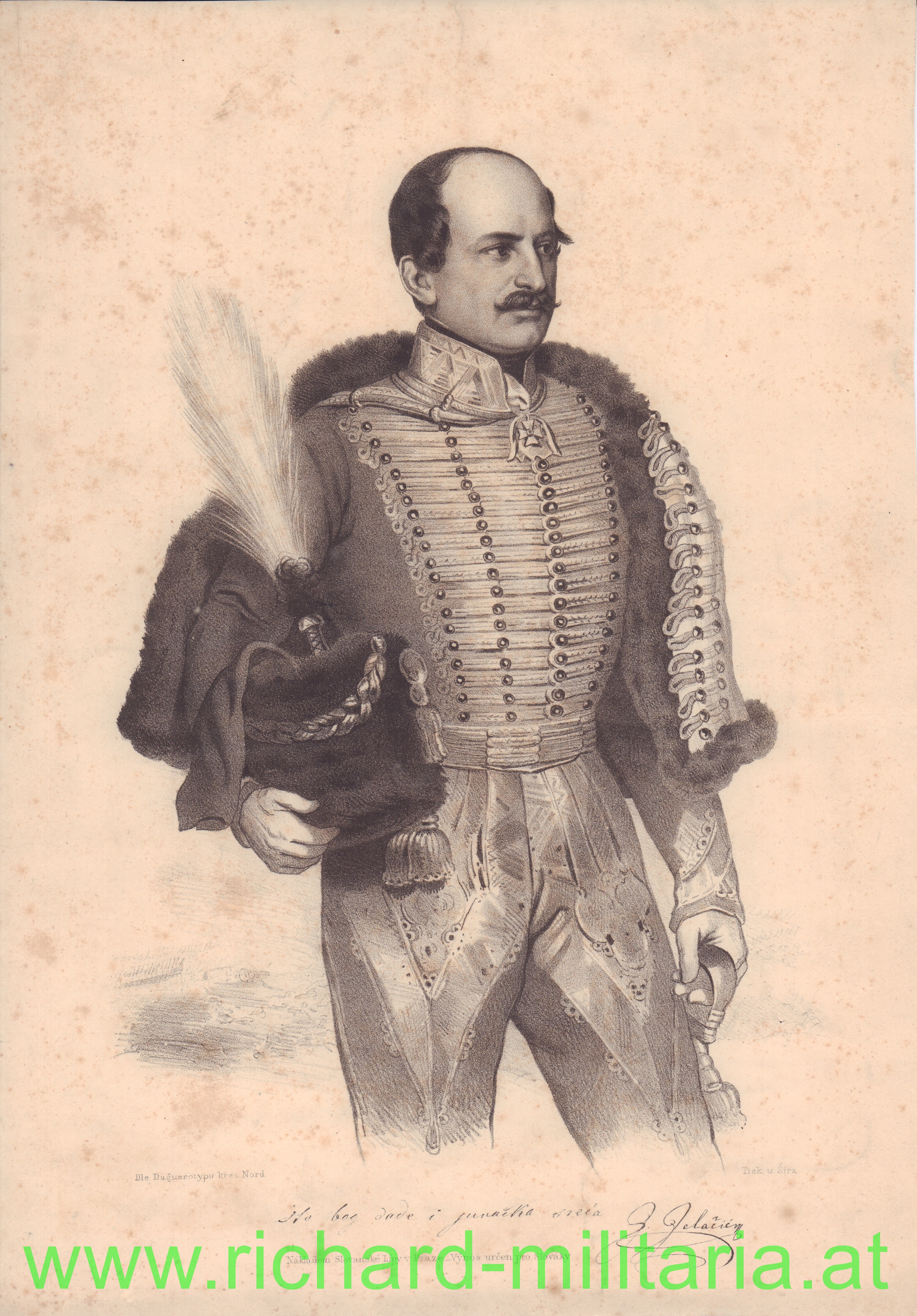 Joseph Graf Jelačić von Bužim; Ban von Kroatien; Lithografie; Format 28,5 x 39 cm