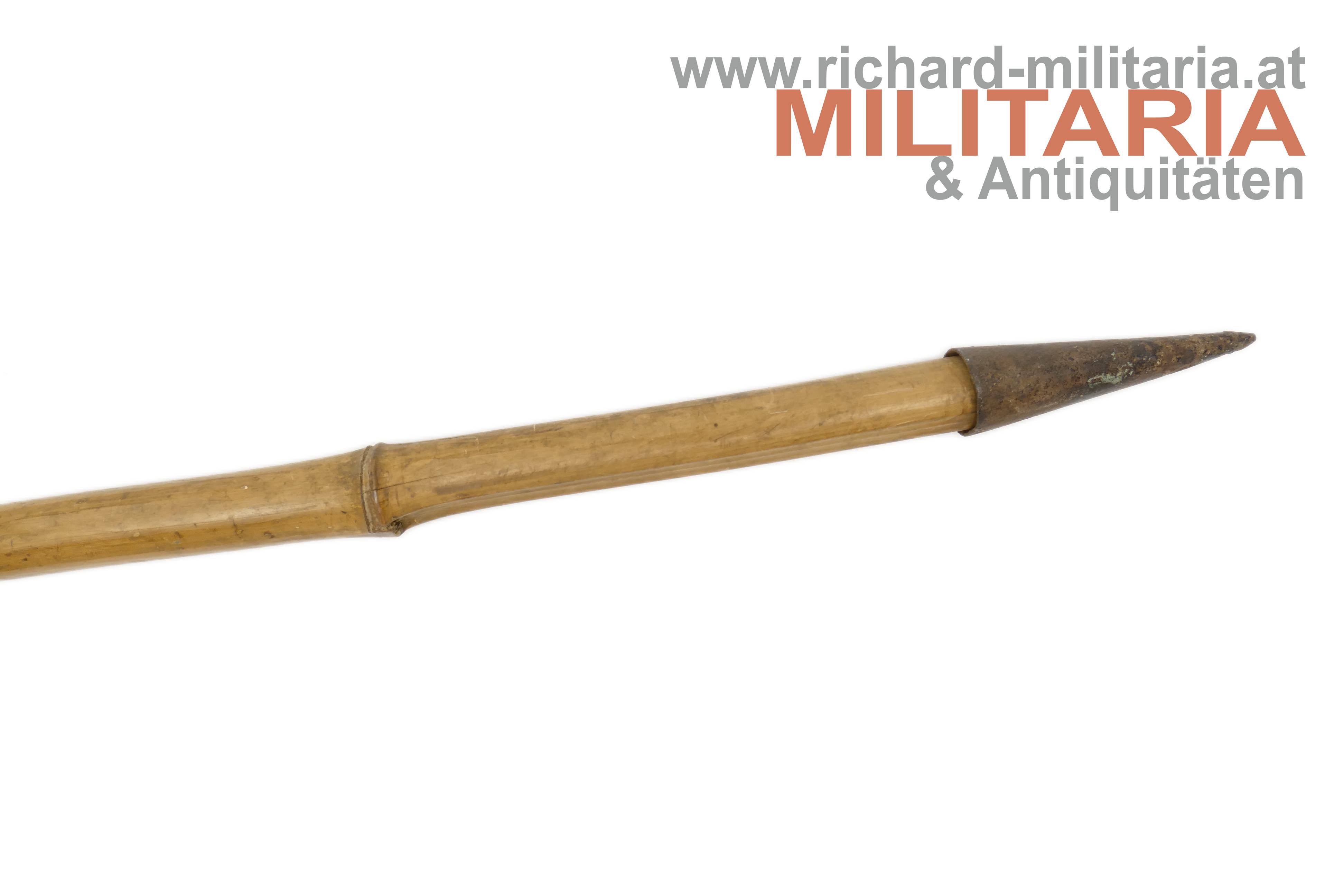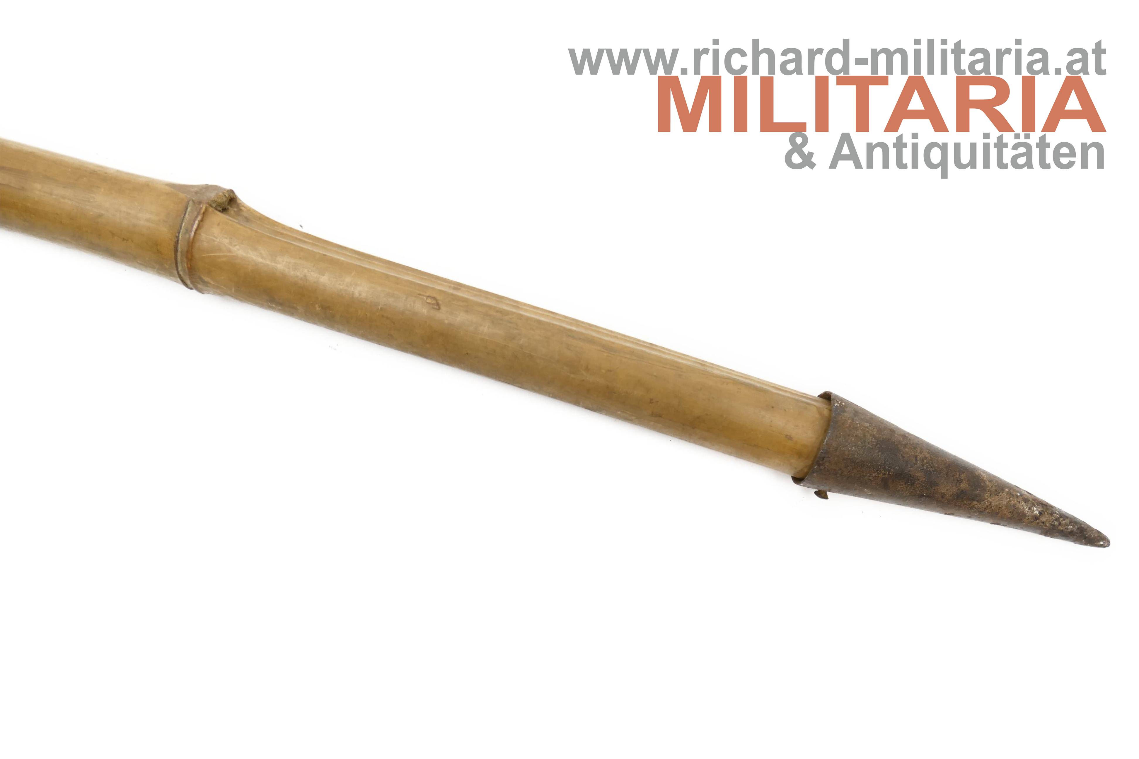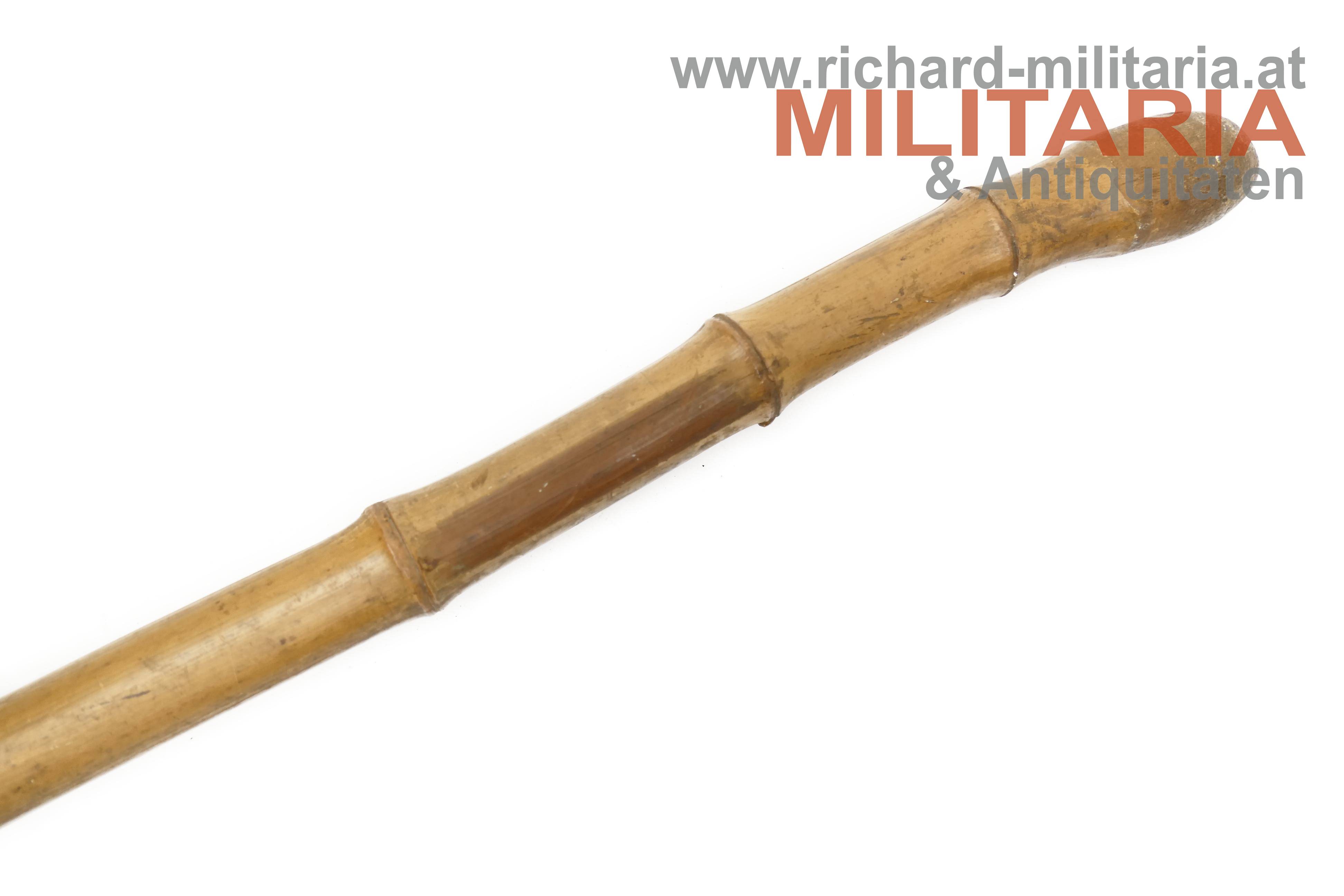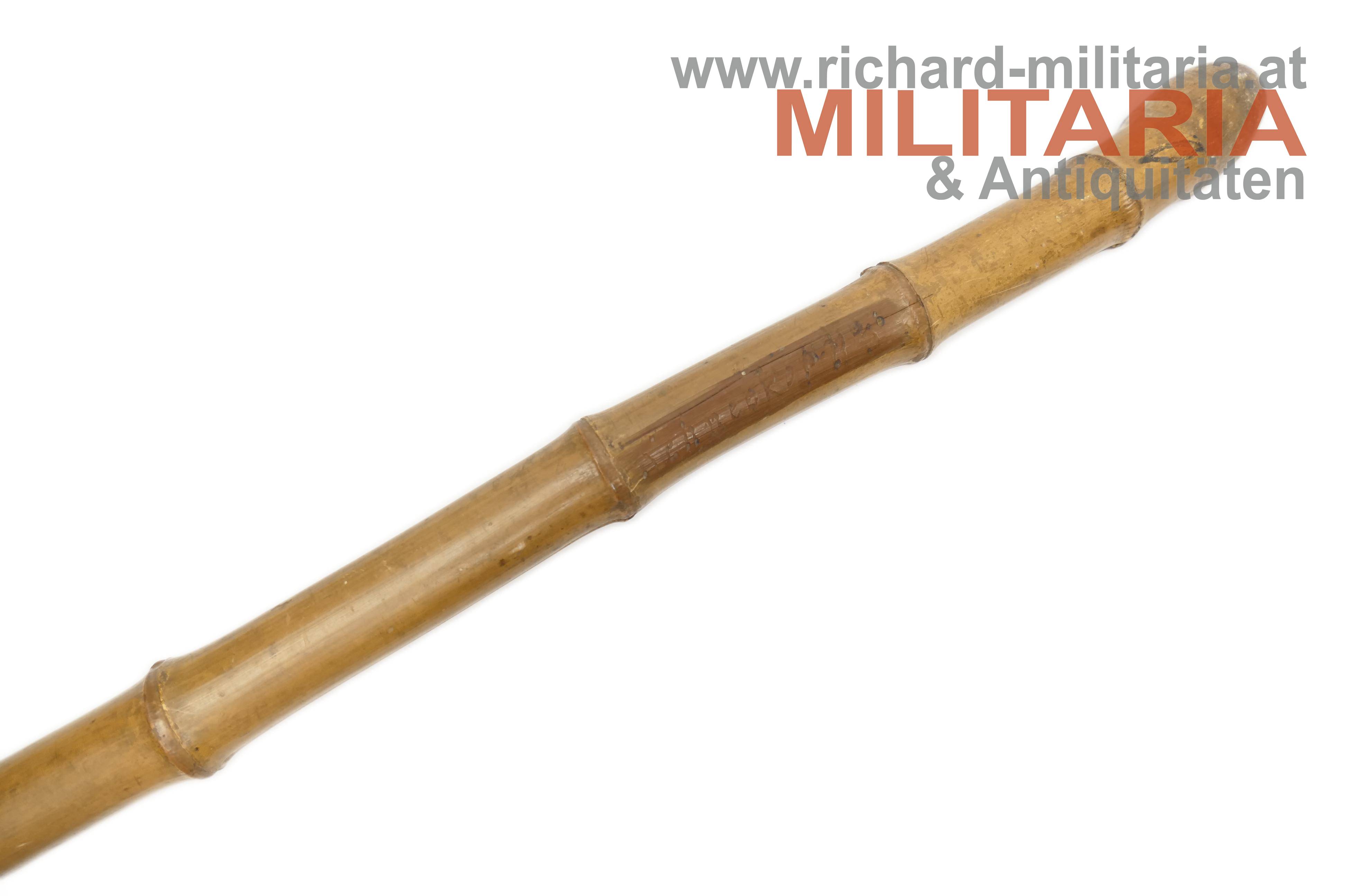 k.(u.)k. Gebirgsstock; Stock aus Bambus und am unteren Ende mit einer spitz zusammenlaufenden angenagelten Eisenhülse; am oberen Ende der nur schwer lesbaren Besitzer "Schneekxxxx" eingebrannt; oben ist der Stiel abgerundet;