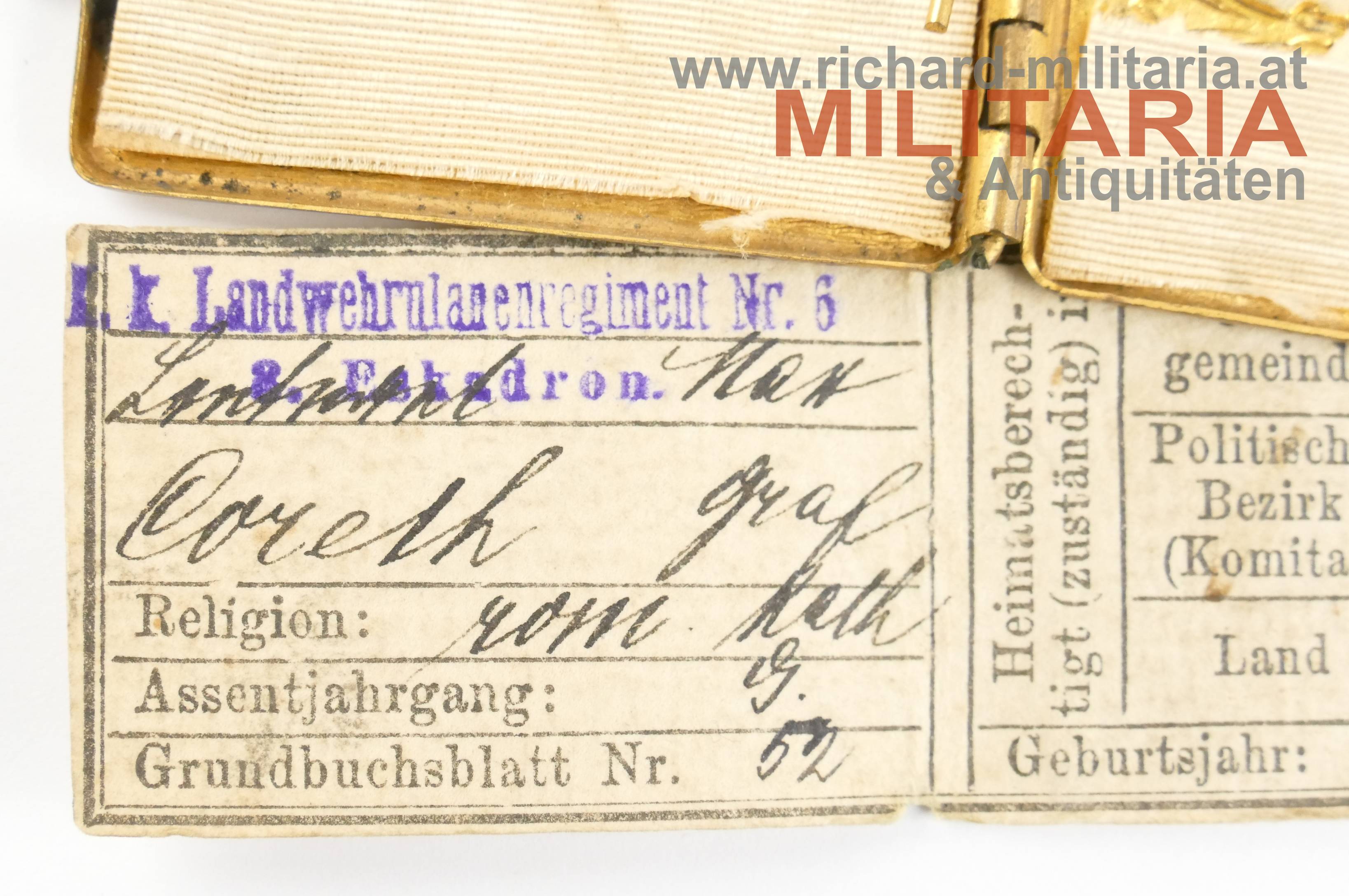 Produktinformationen "k.k. Erkennungsmarke Offizier - Graf Max Coreth v. Coredo u. Starkenberg - LUR 6 "