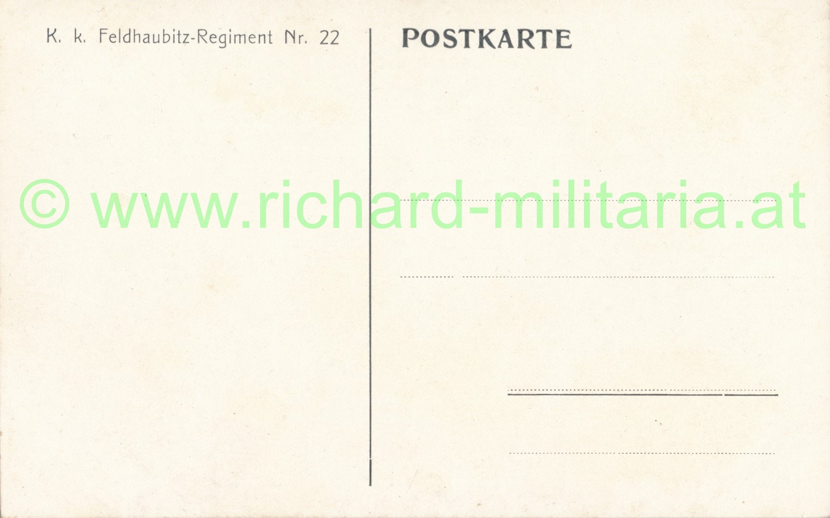 k.k. Feldhaubitz Rgt. 22, ungelaufene Postkarte