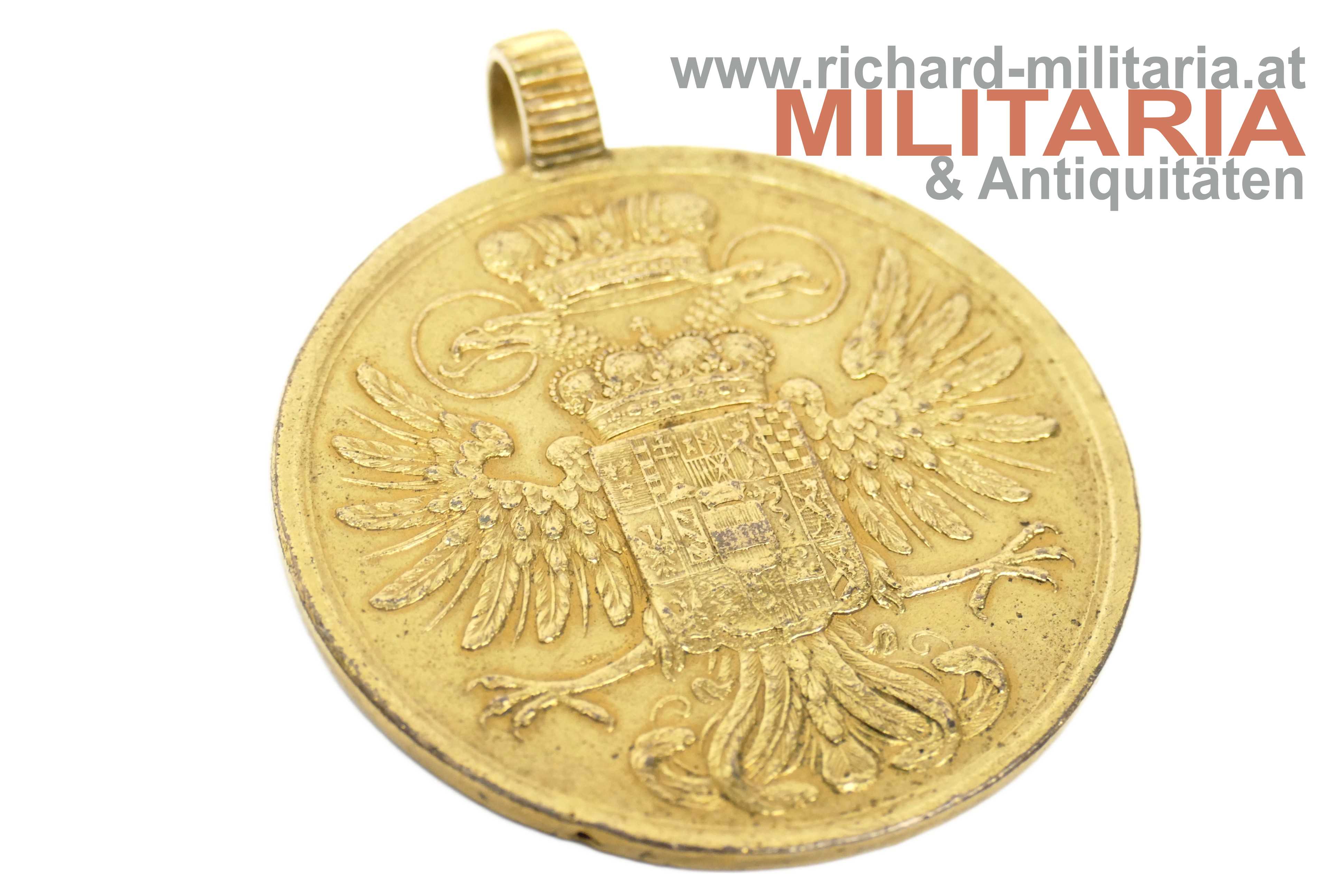 k.k. Invalidenmedaille 1750; Bronze vergoldet; mit geriffelter runder Trageöse; Durchmesser 60mm;