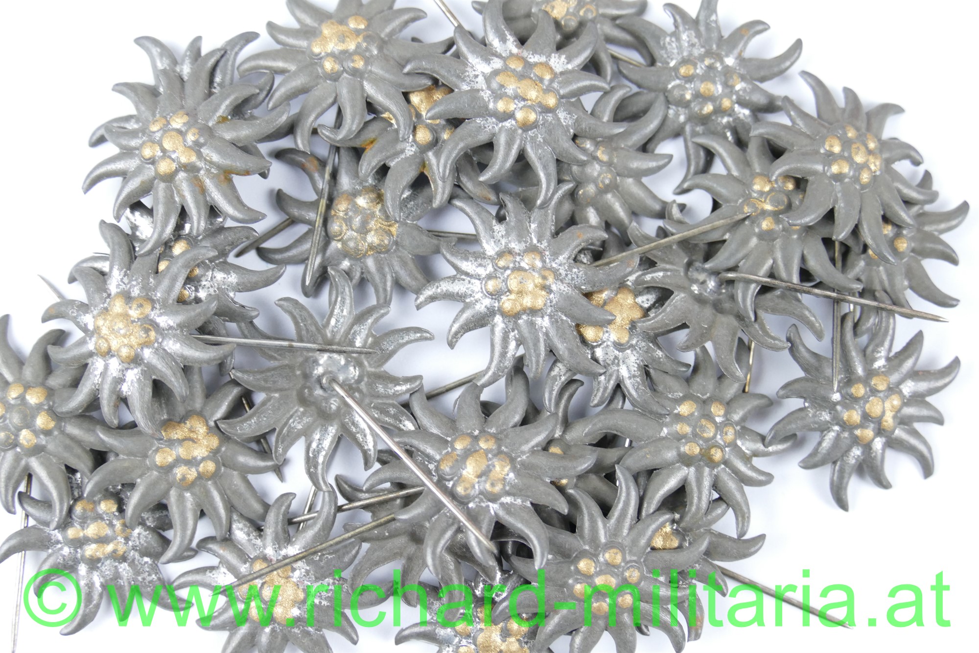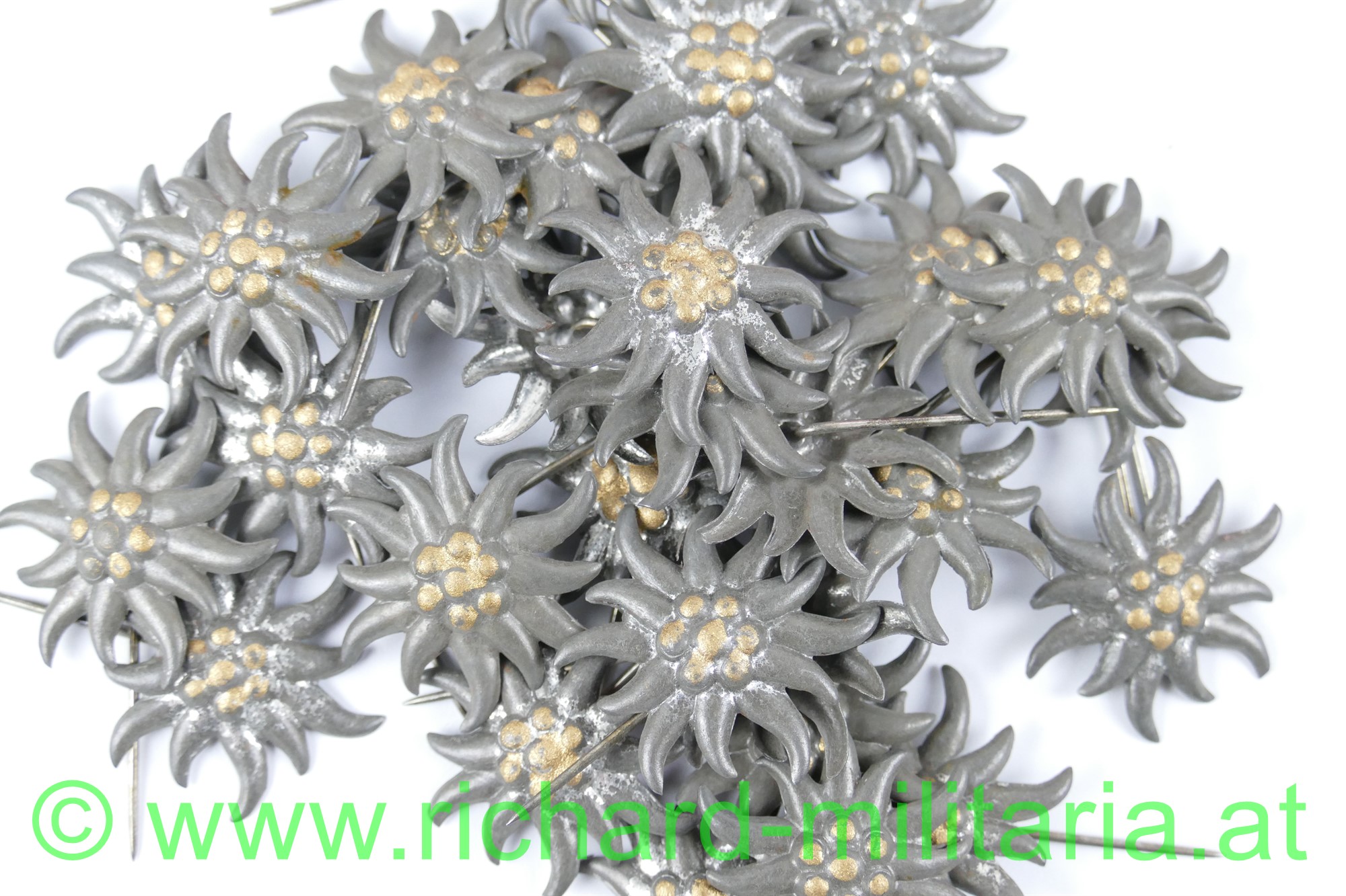 Diese Edelweiss wurden entweder von den Soldaten direkt auf der Kappe oder im am Zivilanzug am Revers getragen. Sie sind durch zahlreiche Fotos auf den Kappen der kk. Landwehr-Gebirgstruppen belegt.