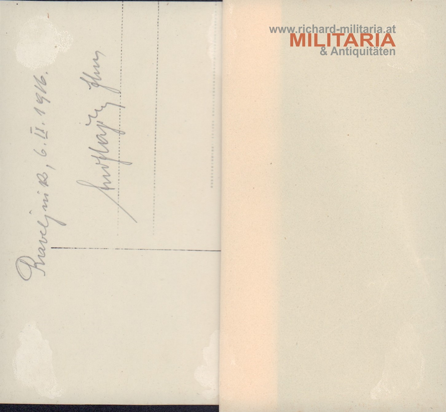 k.k. Landwehr-Gebirgstruppen - Fähnrich; Rückseite beschrieben mit "Raveljnik, 6. IX. 1916" - mit unleserlicher Unterschrift