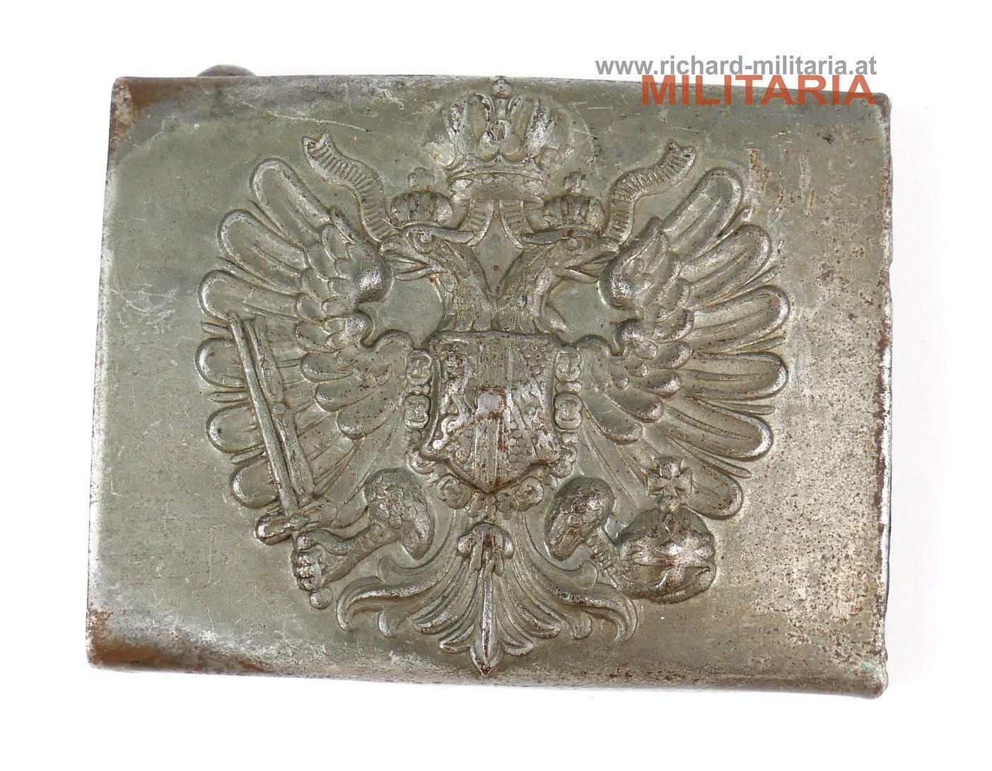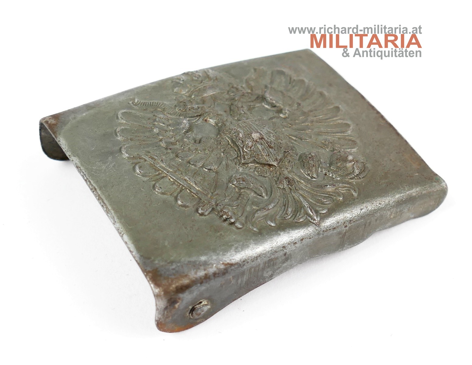 k.k. Landwehr Gebirgstruppen - Koppelschloss für Mannschaften; Eisen (!) feldgrau lackiert - leicht flugrostig; Variante mit dem durchgehenden Gegenhaken-Bügel (!);