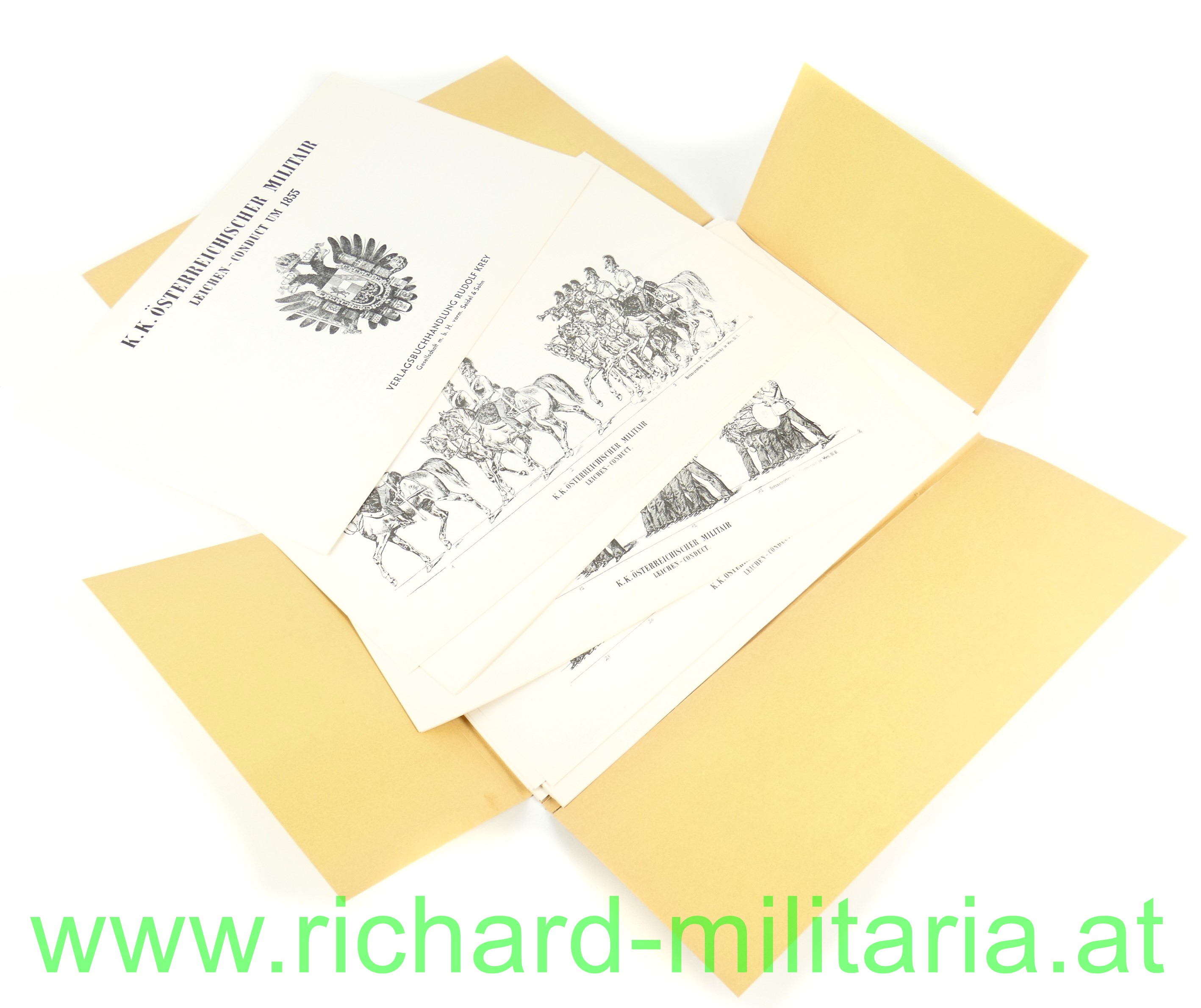 k.k. Österreichischer Militair Leichen-Conduct um 1855; Bildermappe, Nachdruck, Format der Mappe 42 x 26,5 cm