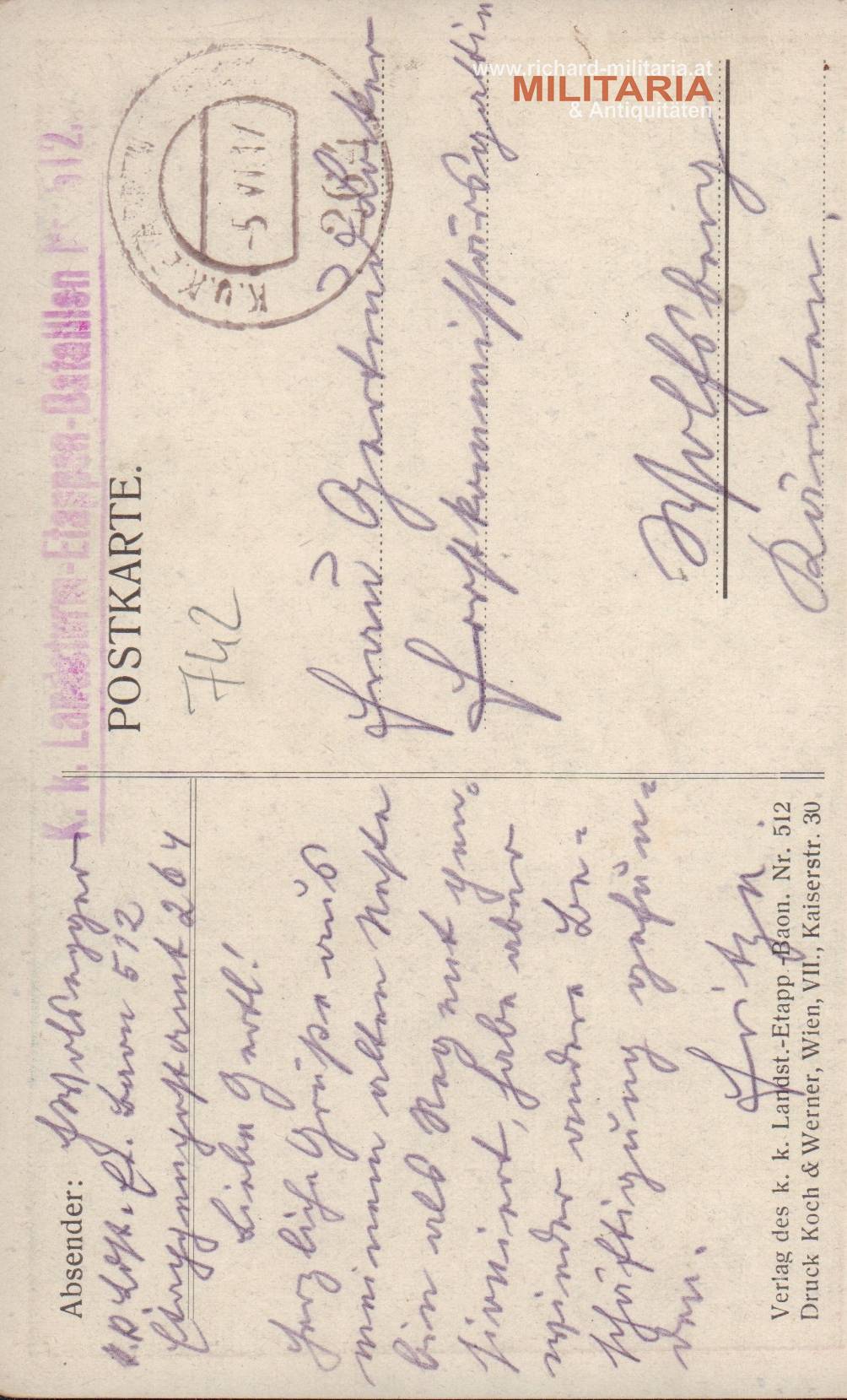 k.k. PK - Landsturm-Etappen-Bataillon Nr. 512 - Kriegsfürsorge; revers beschrieben;