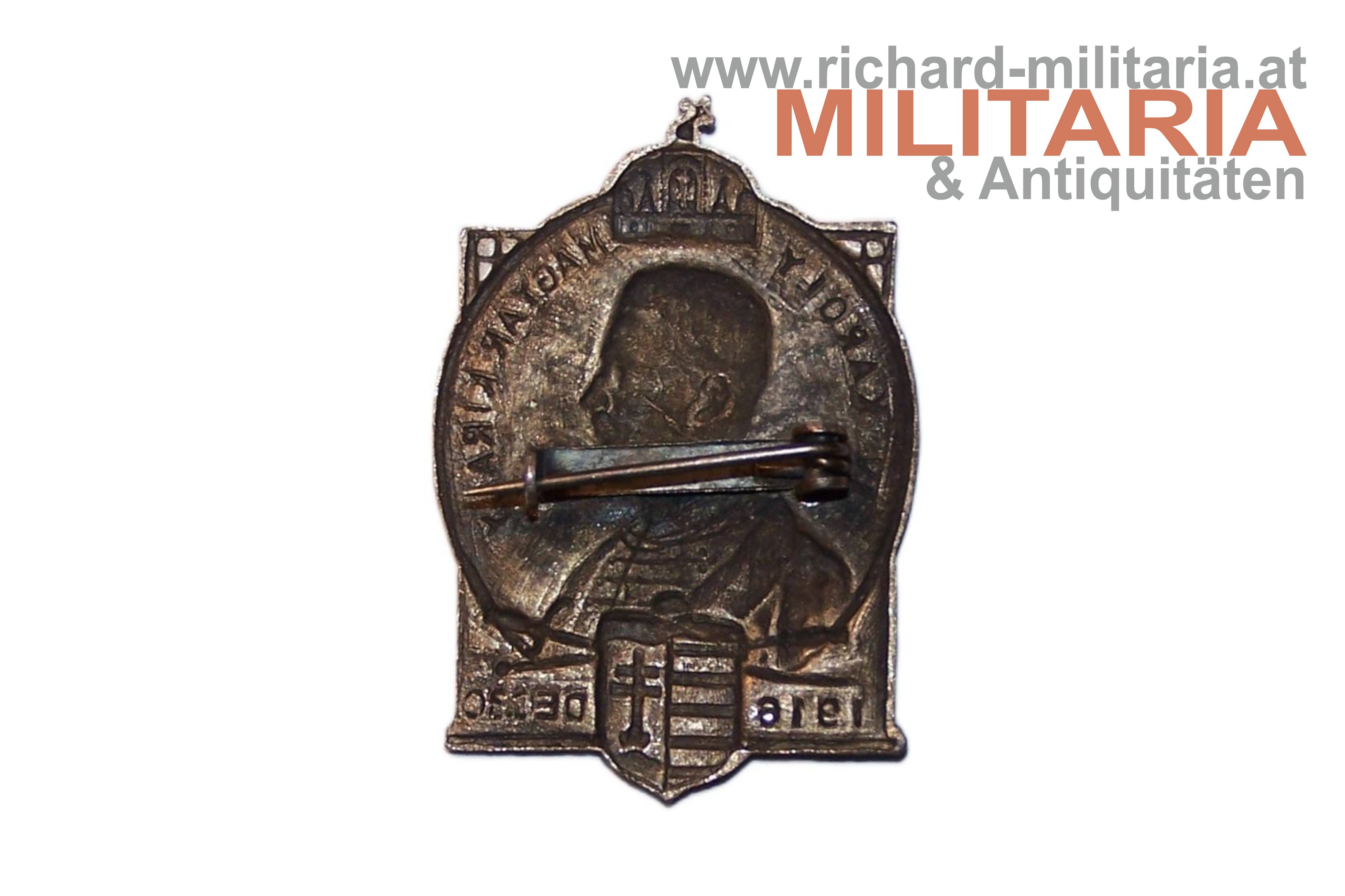 k.u. Kappenabzeichen - König Karl - Krönungsdatum 30. Dec. 1916; originales Nadelsystem;