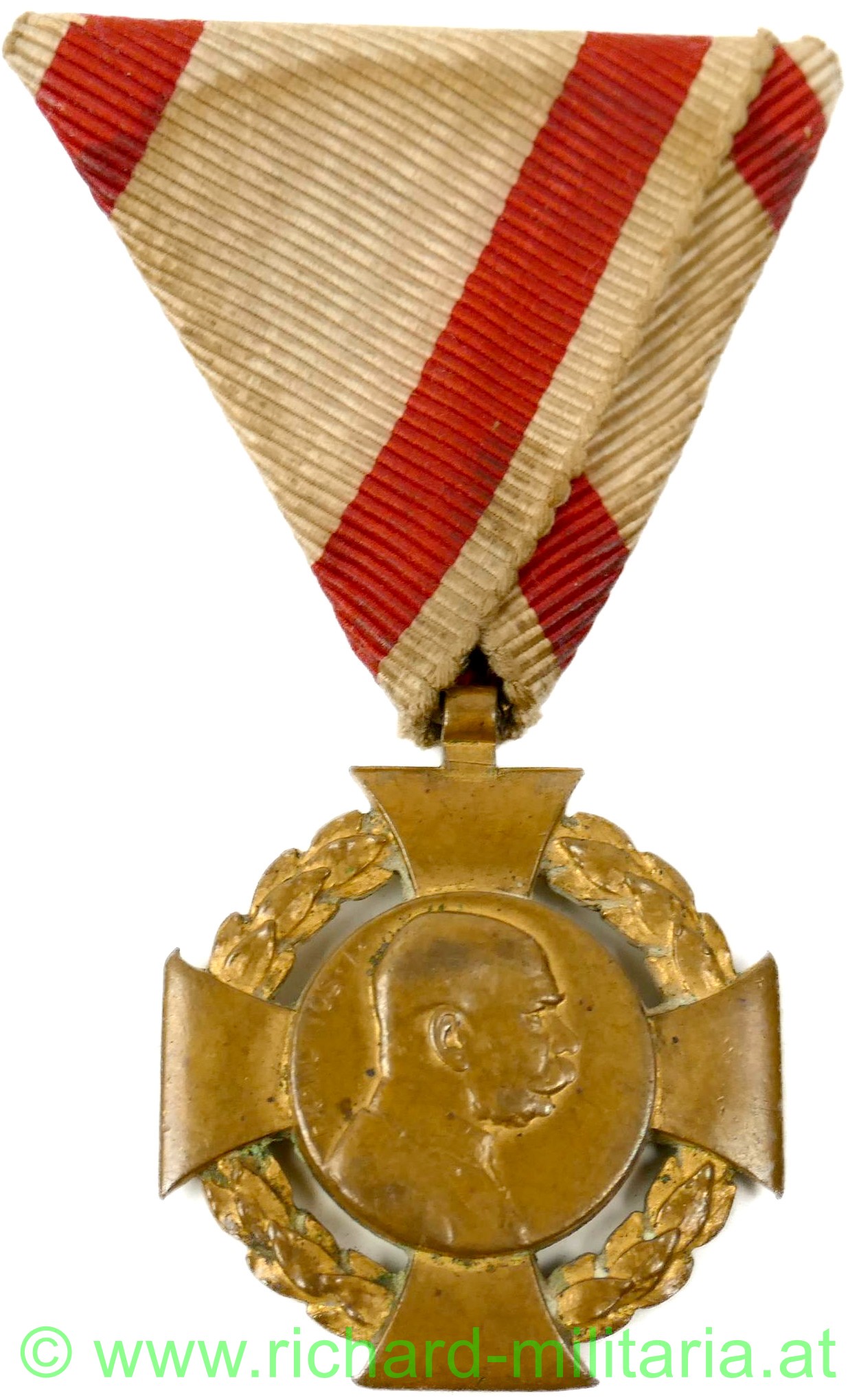 k.u.k. Jubiläumskreuz 1848 -1908, Tombak feuervergoldet mit originalem Band für Militär - dieses angeschmutzt;