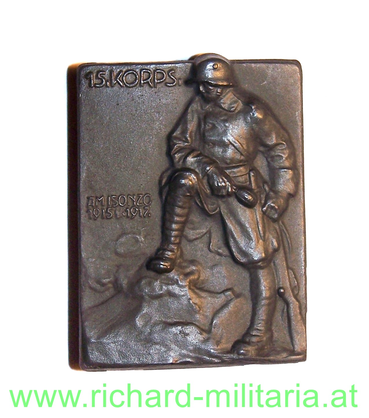 k.u.k. Kappenabzeichen 15. KORPS am Isonzo 1915-1917, Zinkblech , originales Nadelsystem, sehr guter Zustand