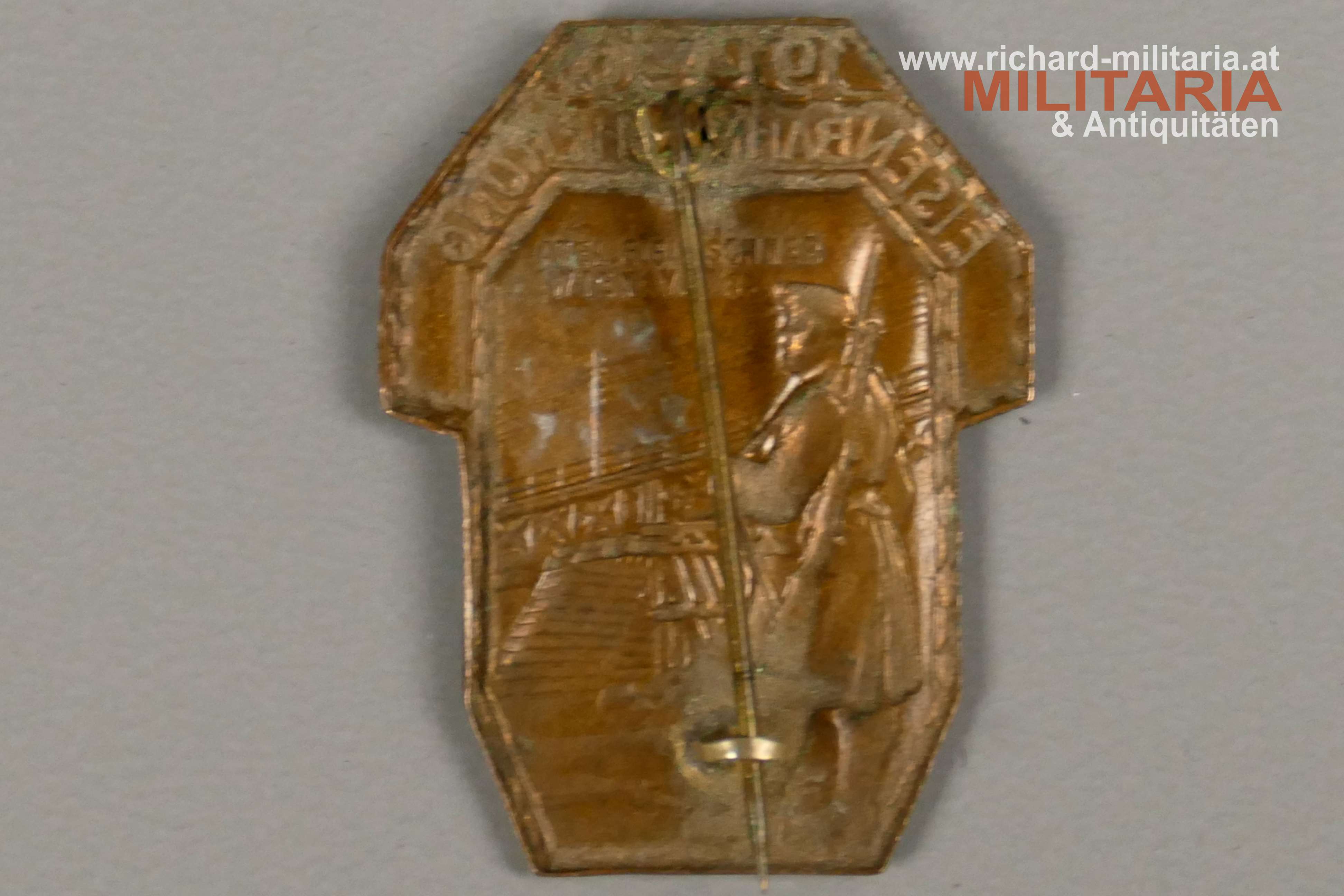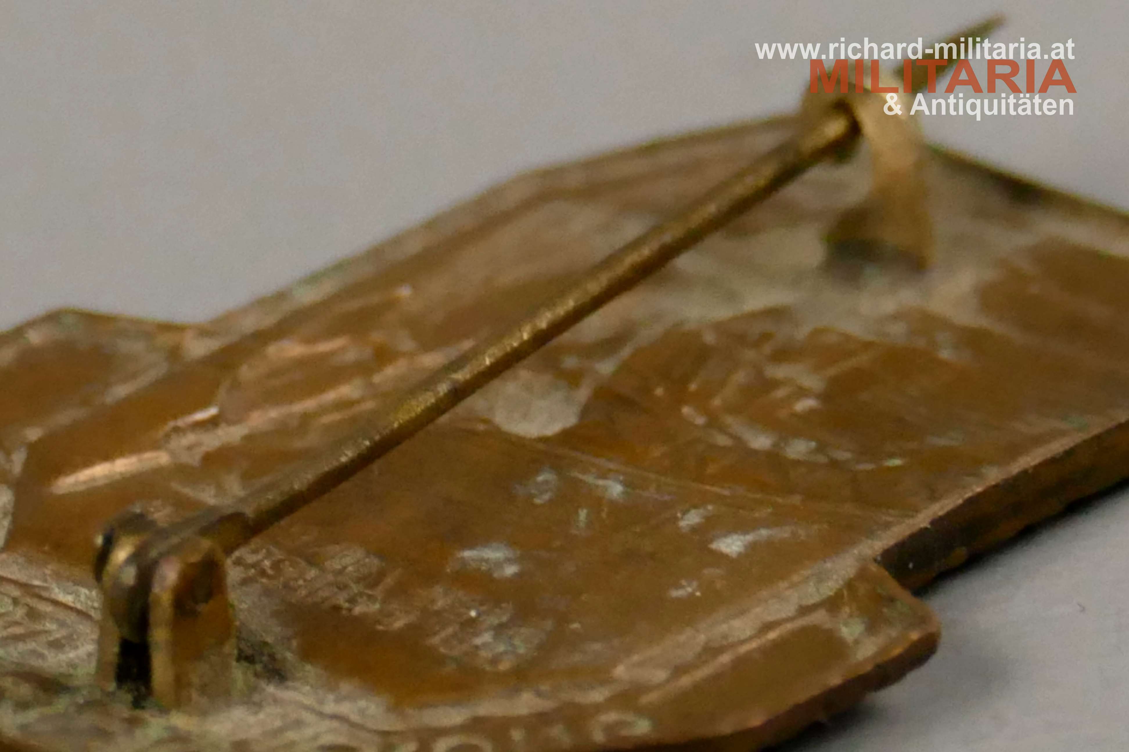 k.u.k. Kappenabzeichen - Eisenbahnsicherung 1914 - 1916, Bronze, originale Nadel und Nadelhaken