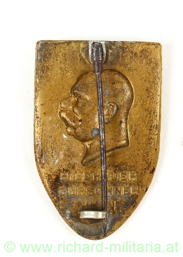 k.u.k. Kappenabzeichen - Feldzug 4. Armee Viribus Unitis 1914-1915, Tombak, mit Hersteller auf der Rückseite: "Gurschner, Wien";
