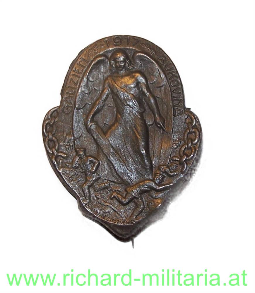 k.u.k. Kappenabzeichen Galizien 1917 Bukovina; Tombak; originales Nadelsystem; Nadel etwas verbogen;