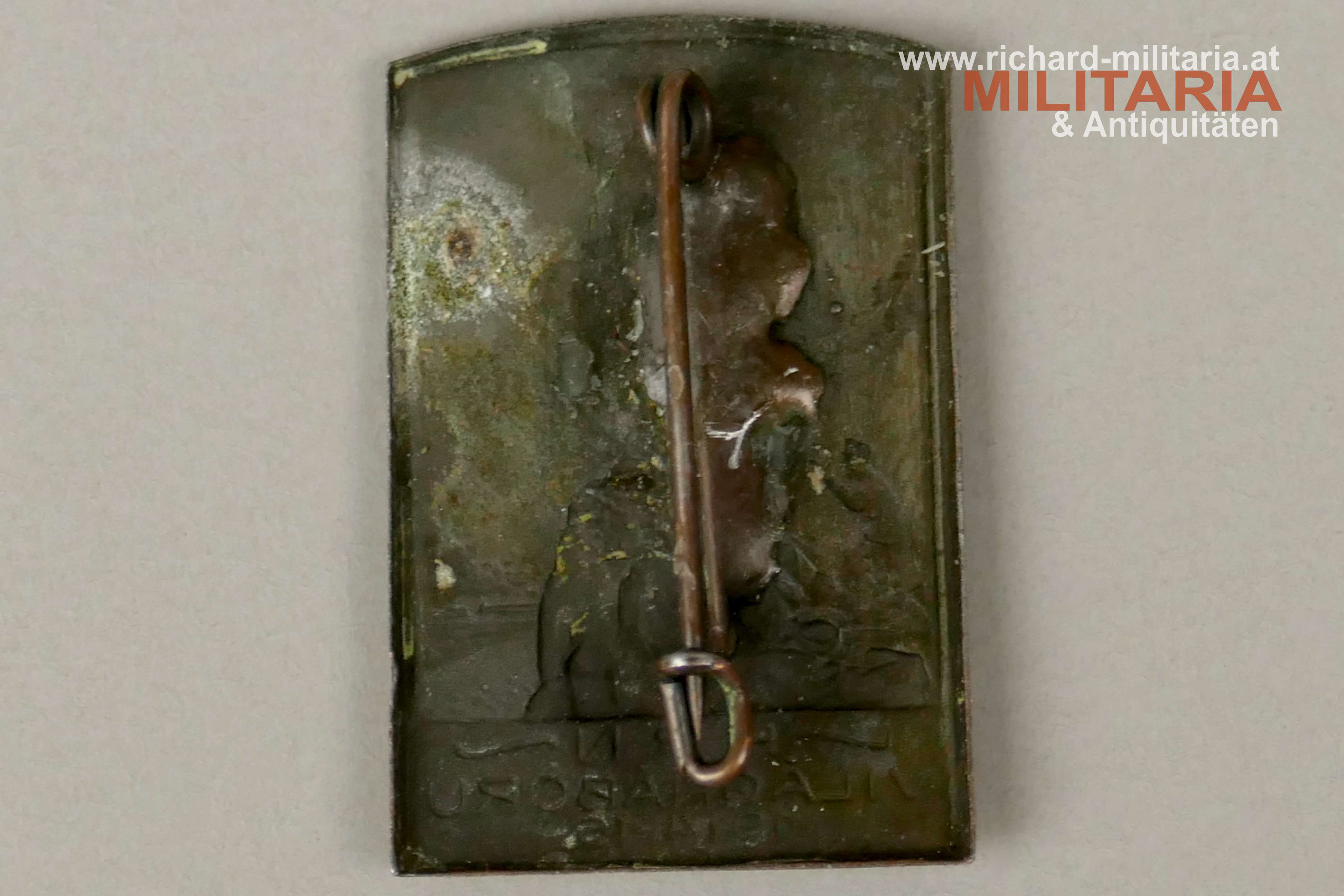 k.u.k. Kappenabzeichen KRN Világháború 1914-16, Zinkblech mit Resten der Bronzierung, originales Nadelsystem;
