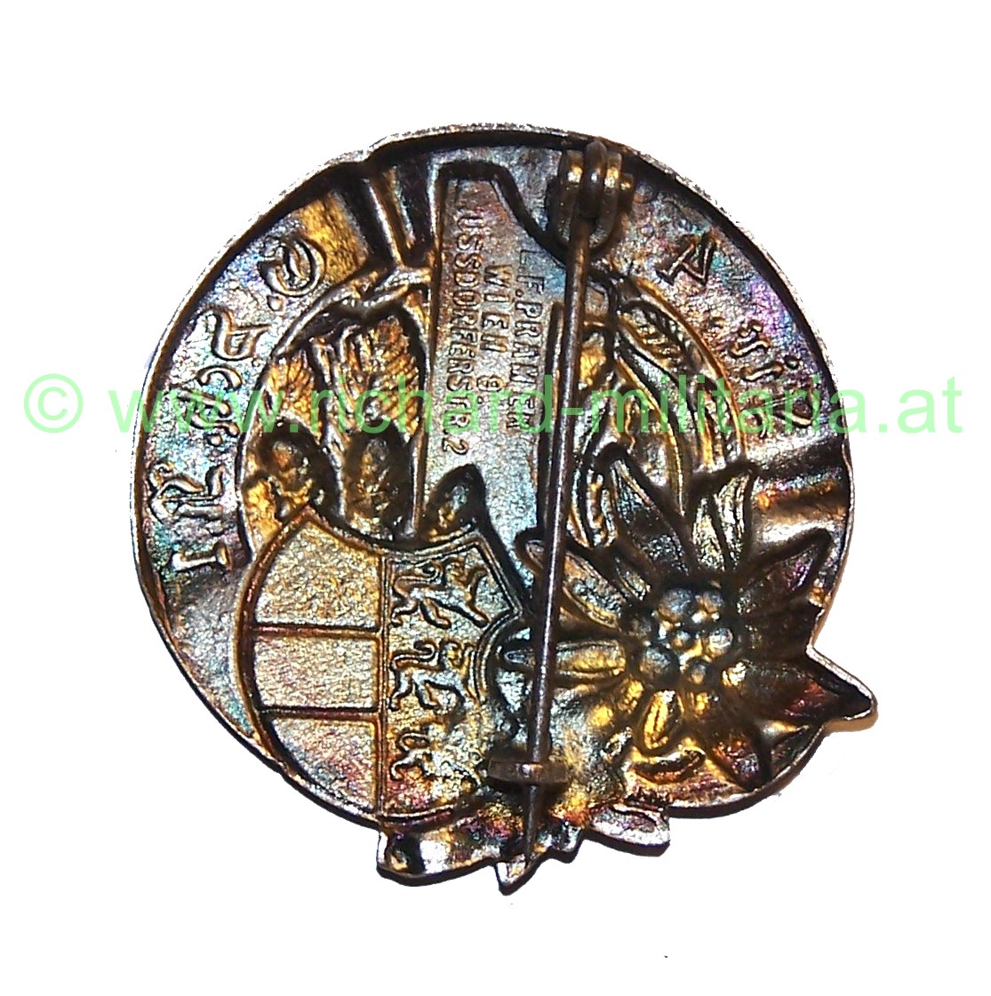 k.u.k. Kappenabzeichen Lir.4. G.Sch.R.1. (Landwehr Inf. Rgt.4 / Gebirgschützen Reg.1) in emaillierter Offiziersausführung (!);