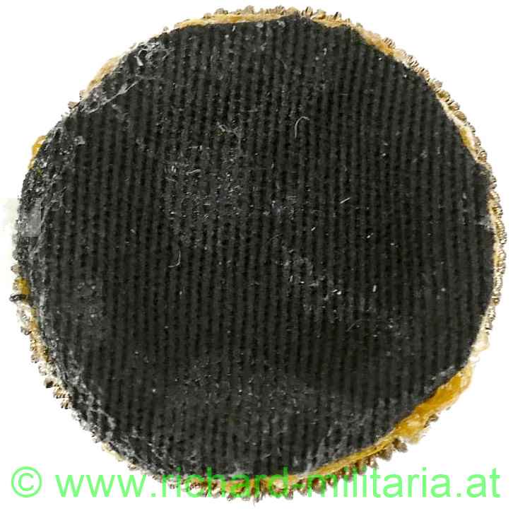 k.u.k. Kappenkokarde f. Offiziere Modell Kaiser Karl, Gespinst aus Goldfaden, Initialen eingestickt auf schwarzem Grund, rückseitige schwarze Stoffabdeckung;