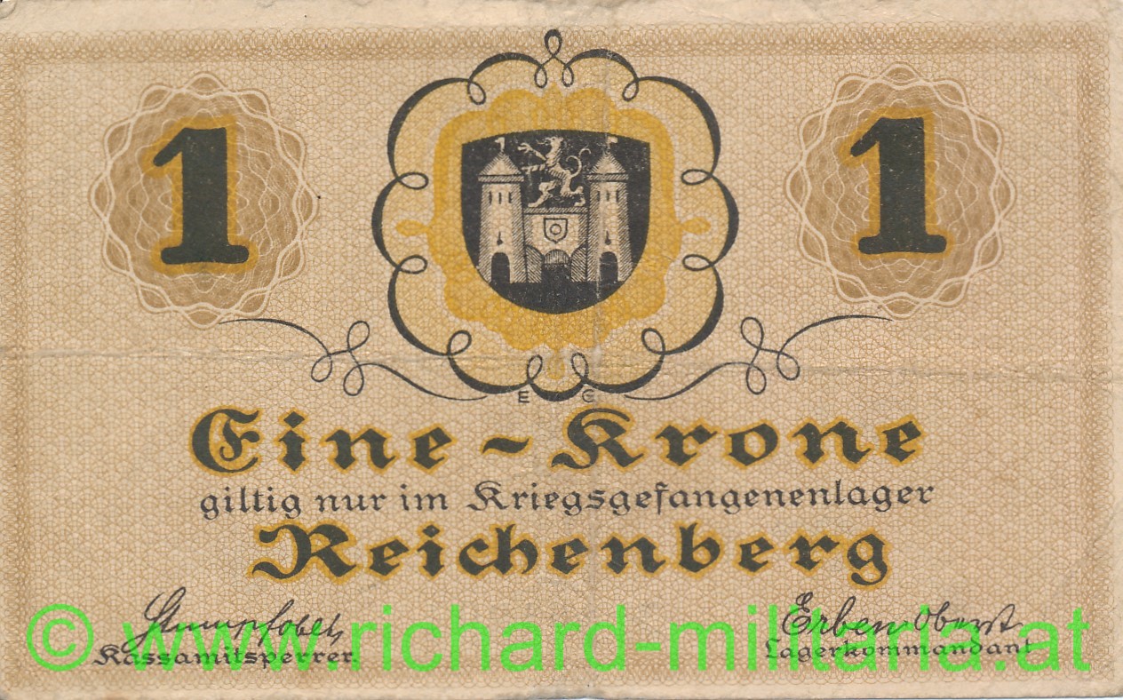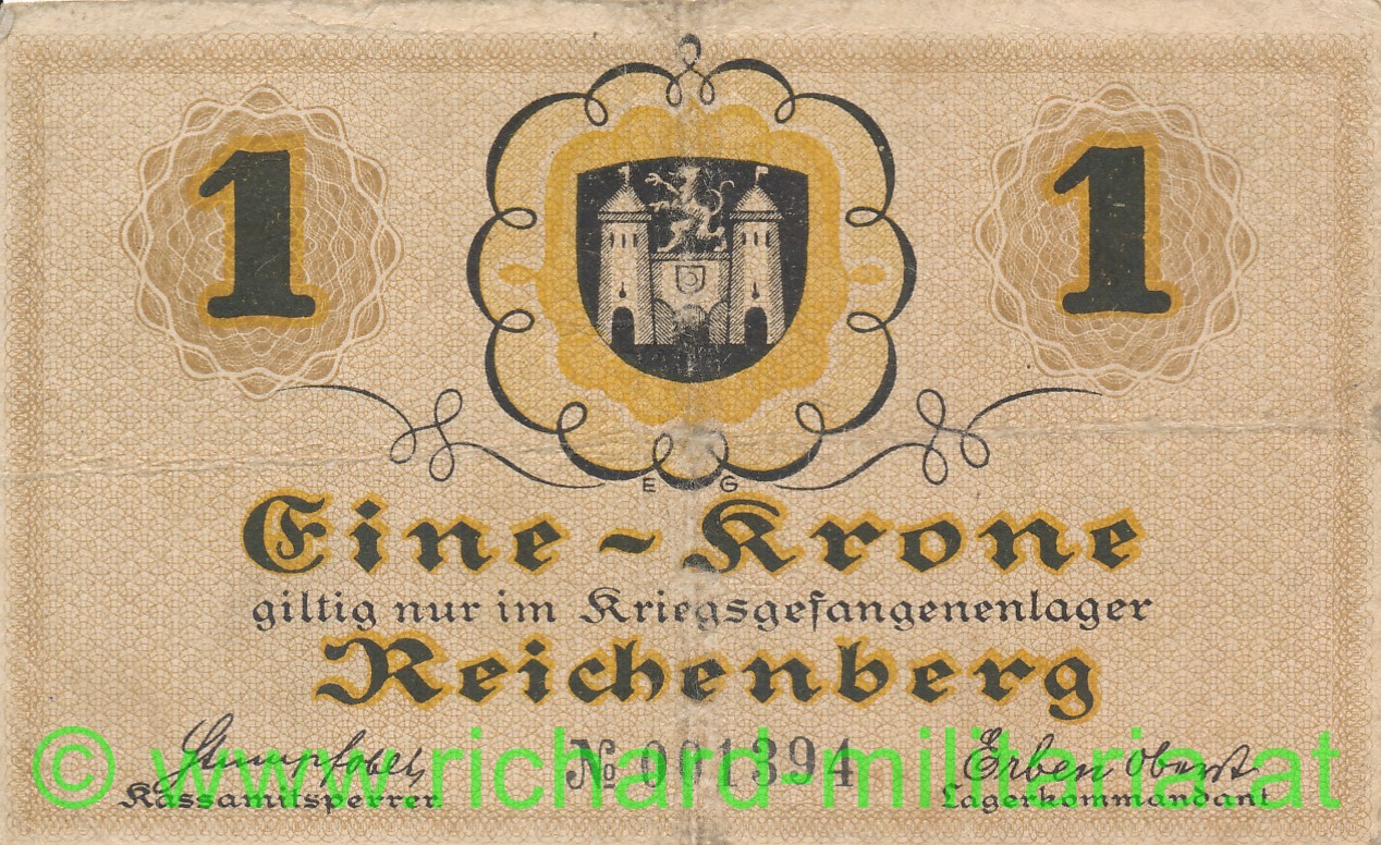 k.u.k. Kriegsgefangenenlager Reichenberg, Lagergeld - 1 Krone, guter Zustand