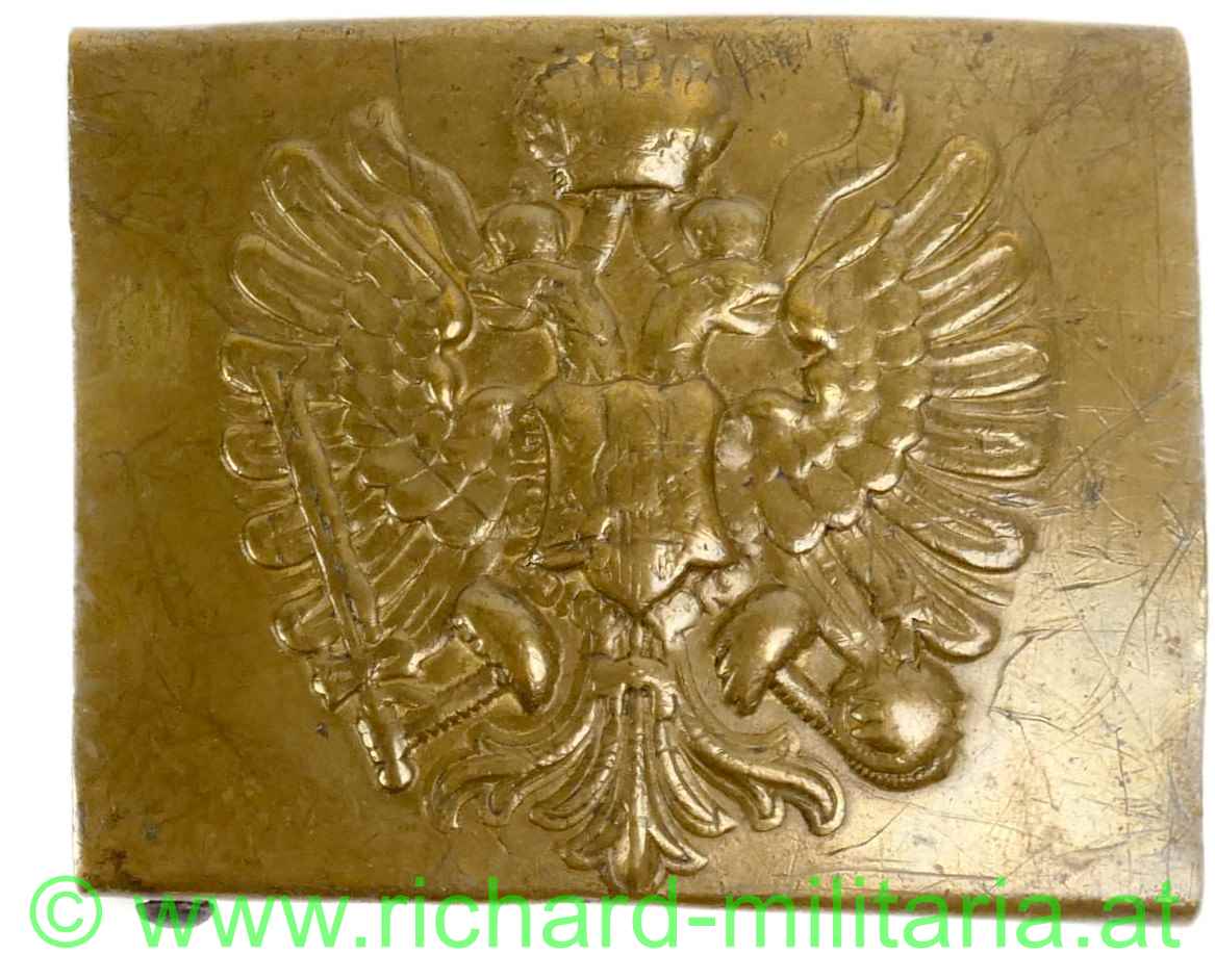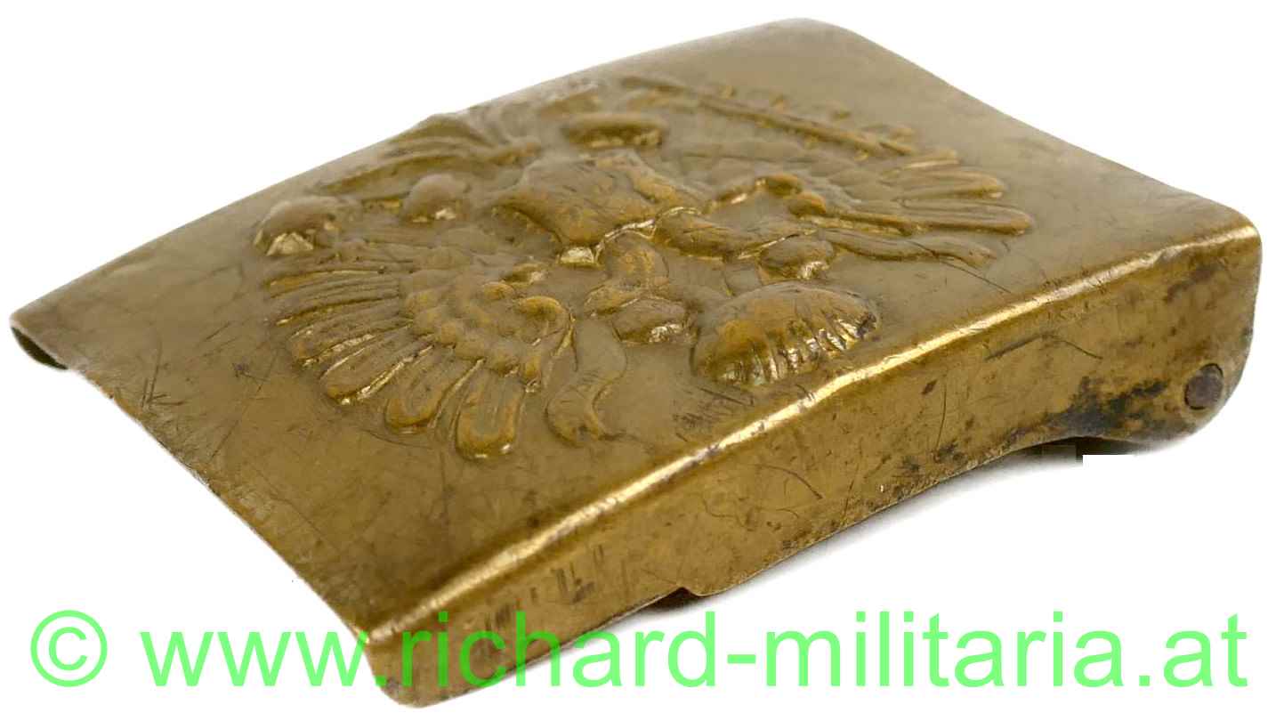 k.u.k. Leibriemenschliesse für Mannschaften und Unteroffiziere der k.u.k. Armee aus dem 1. Weltkrieg; Messing durchgeprägt;