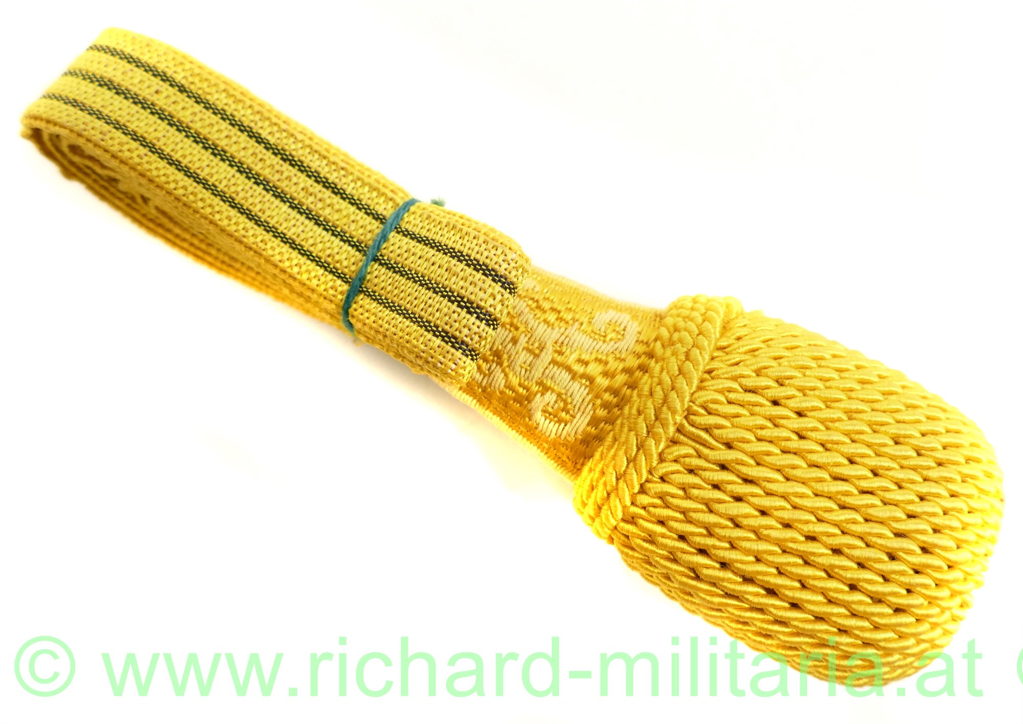 k.u.k. Portepee in geschlossener Form für einen Unteroffizier; Modell Kaiser Karl, kaisergelbe Wolle; ungetragen und noch original zusammengebunden!