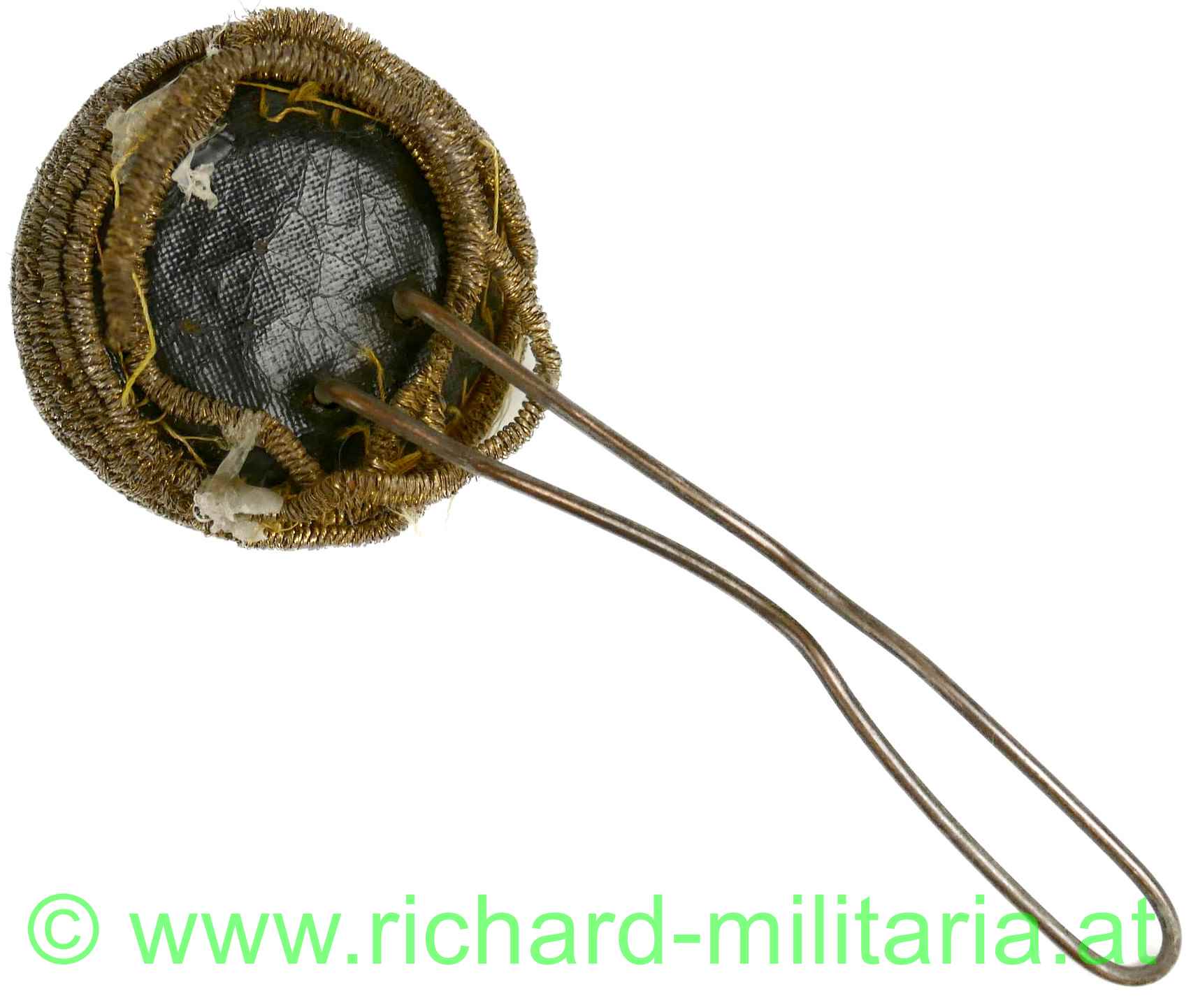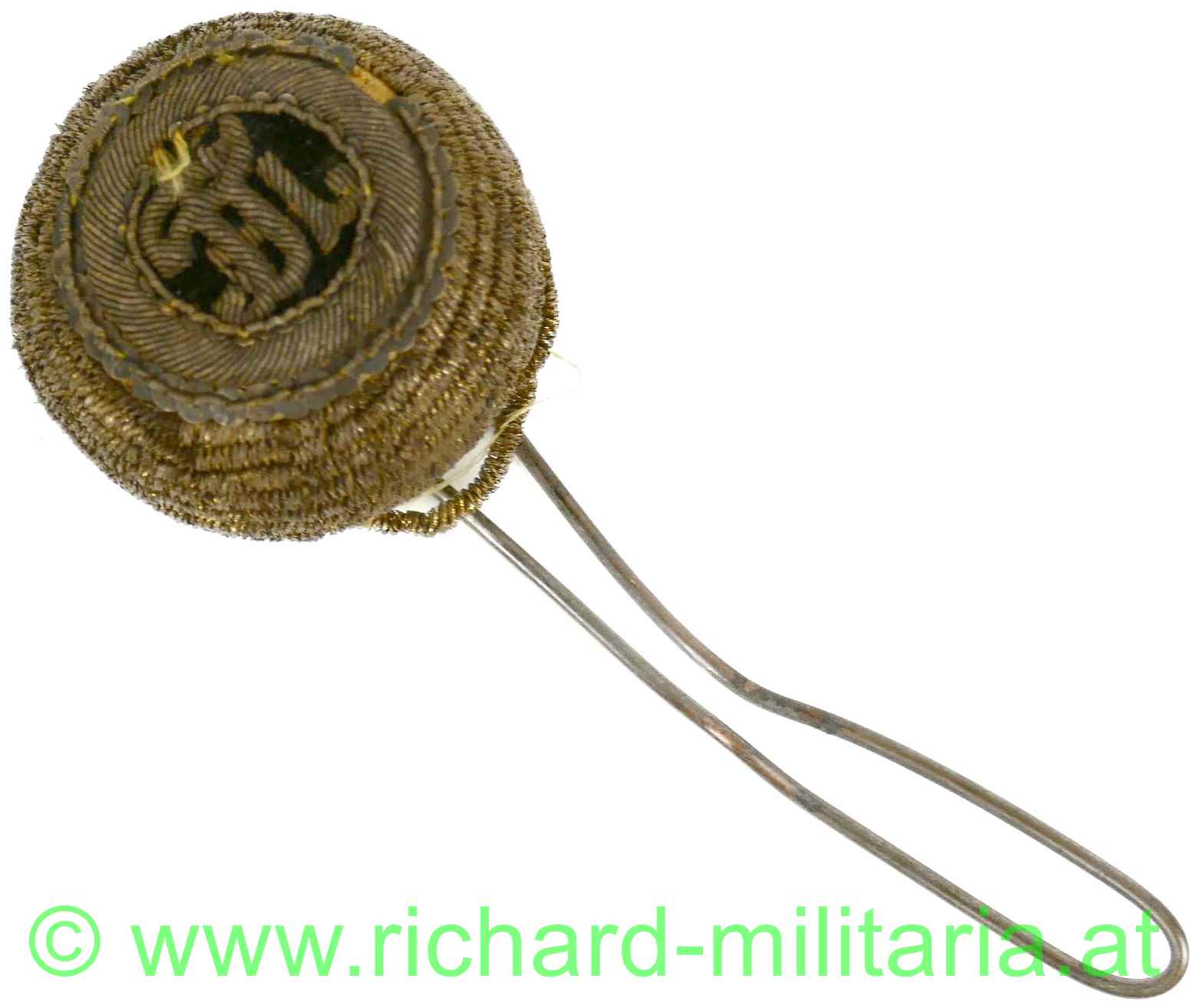 k.u.k. - Tschako Kokarde für Offiziere FJI - Kokarde aus Goldbouillon mit den Initialen FJI; minimale tragebedingte Beschädigung - auf der Rückseite ist der Metallfaden leicht offen - Klebespuren;