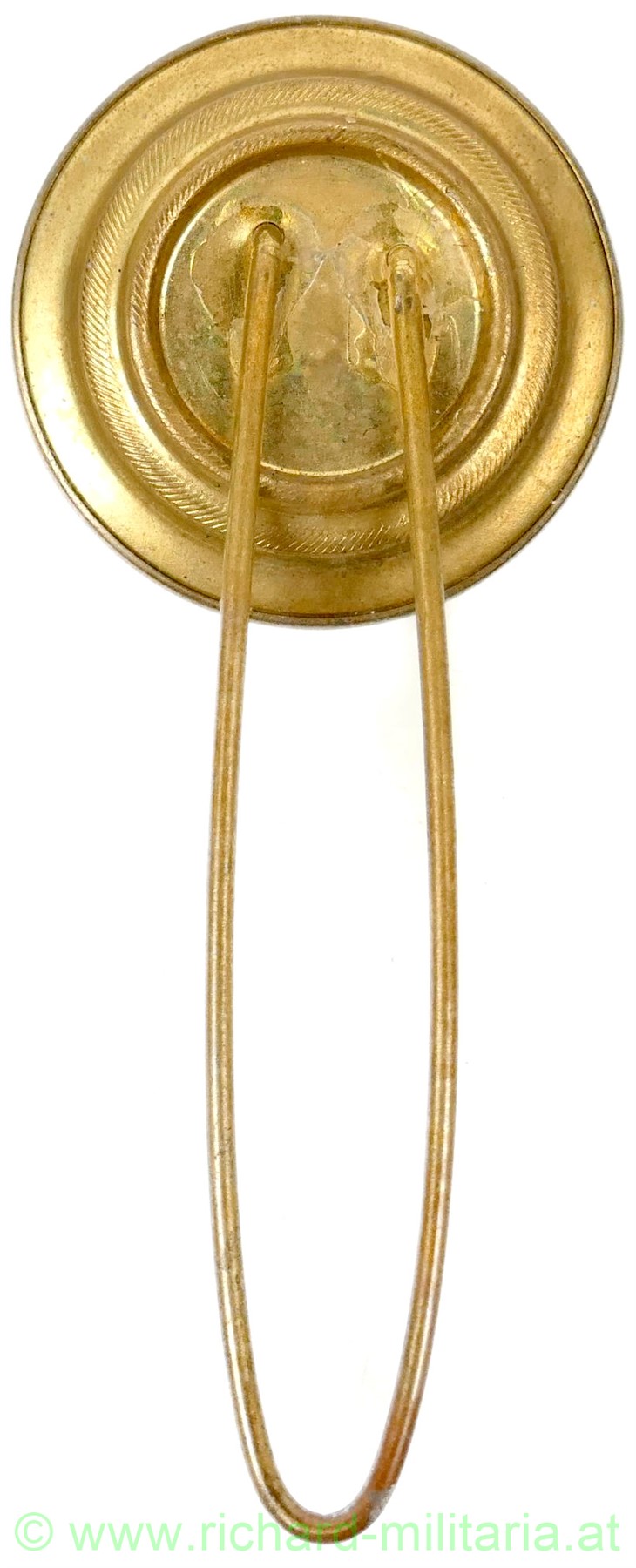 k.u.k. - Tschako Kokarde für Mannschaften/Unteroffiziere; Messing mit schwarzem Mittelfeld aus Stoff; originale Haltedrahtschlaufe aus Messing;