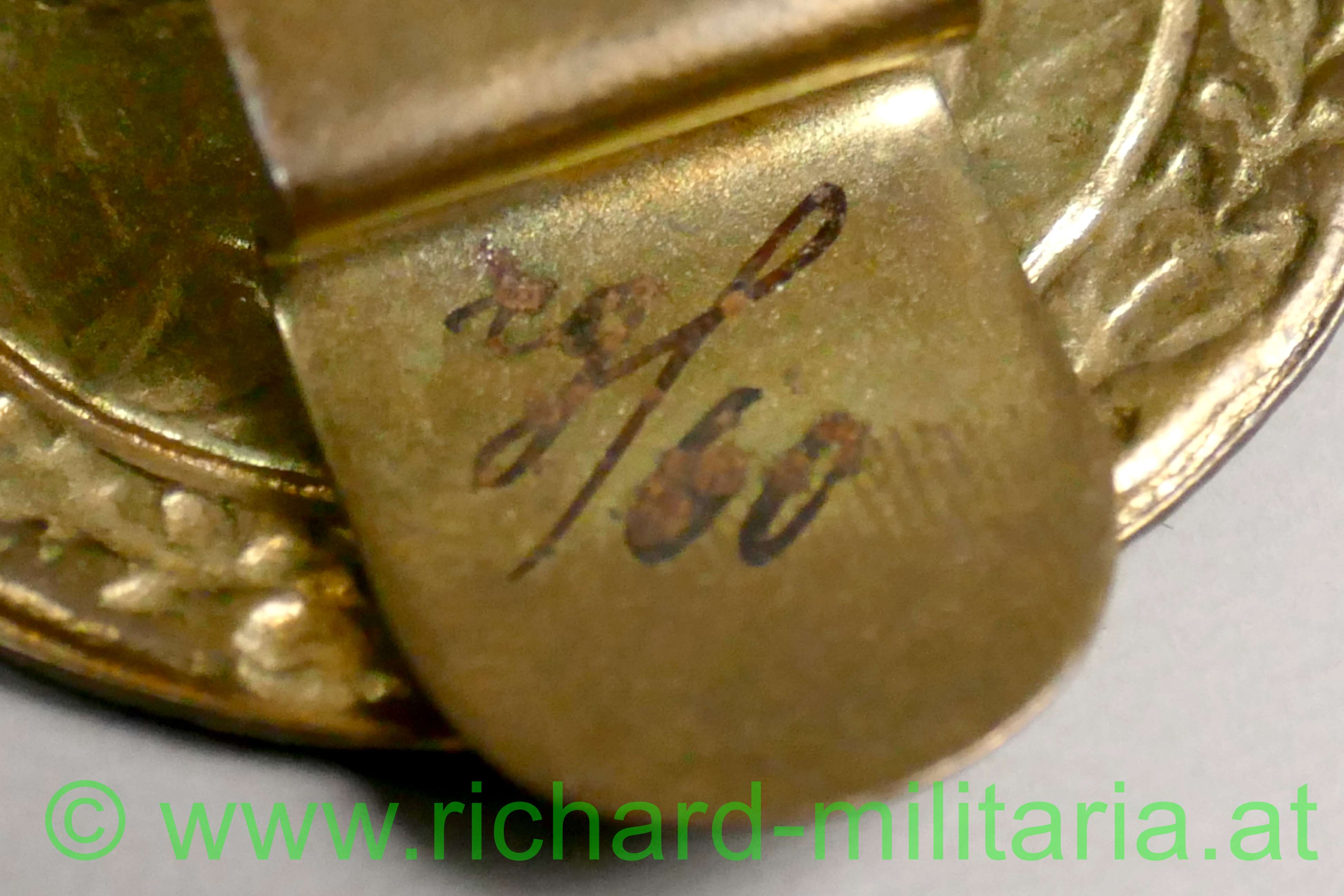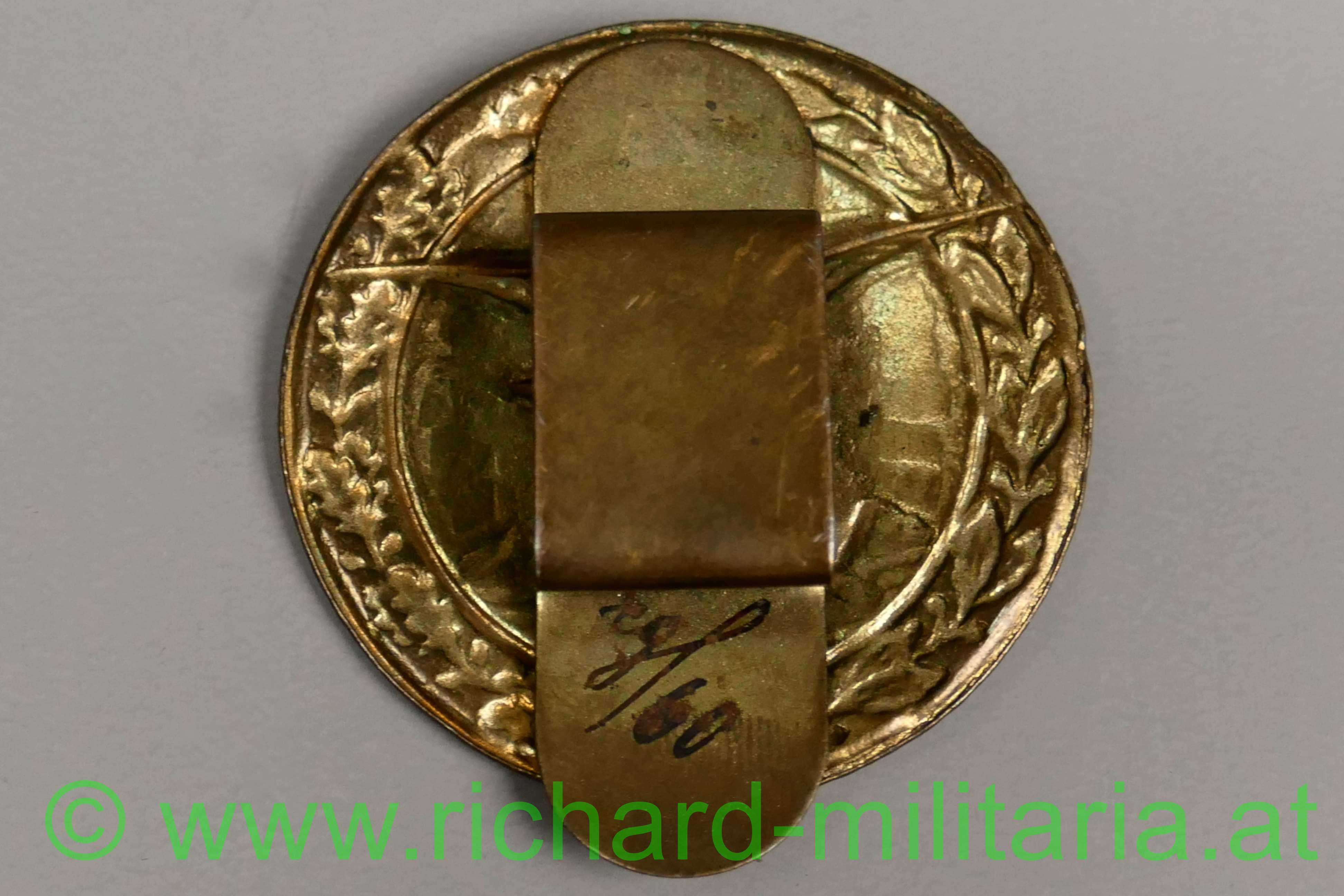 k.u.k. Verwendungsabzeichen Distanzschätzer, Eisenblech vergoldet hohl geprägt; Vergoldung großteils vergangen, ohne Hersteller, original verlötete Tragelasche - diese beschriftet;