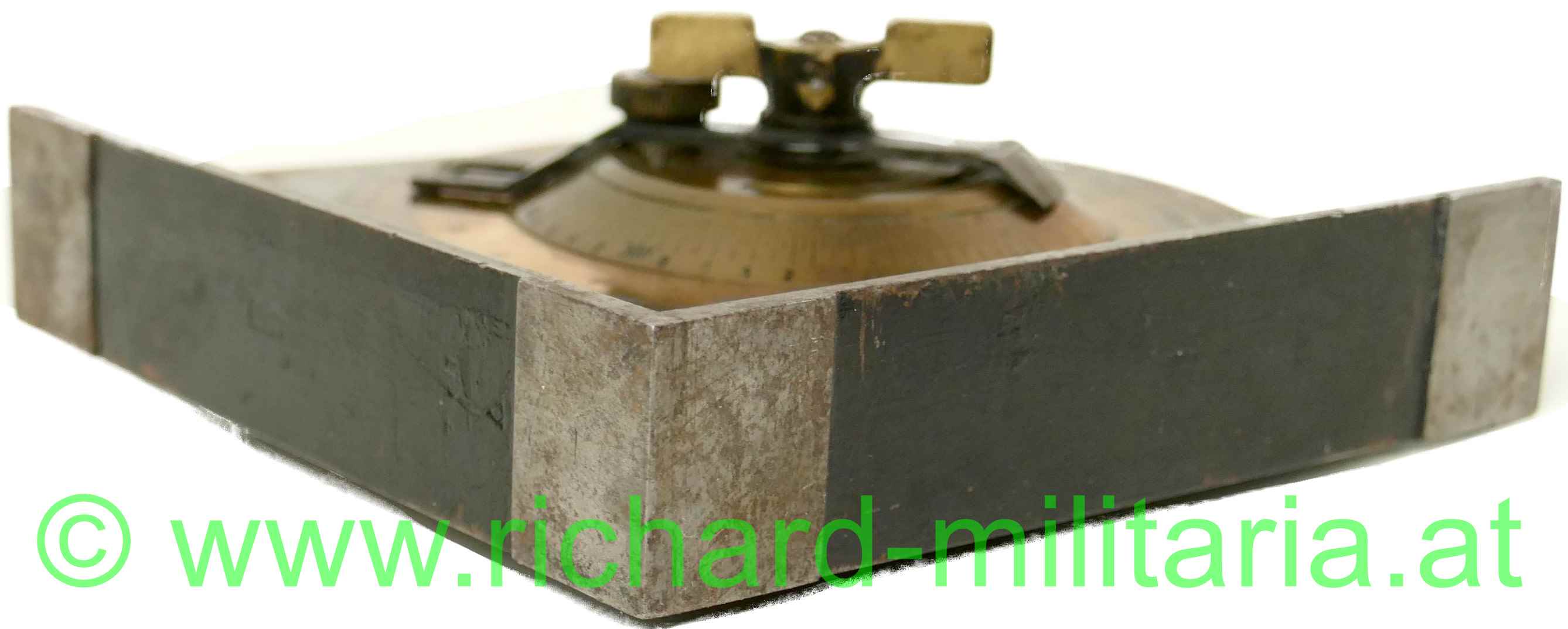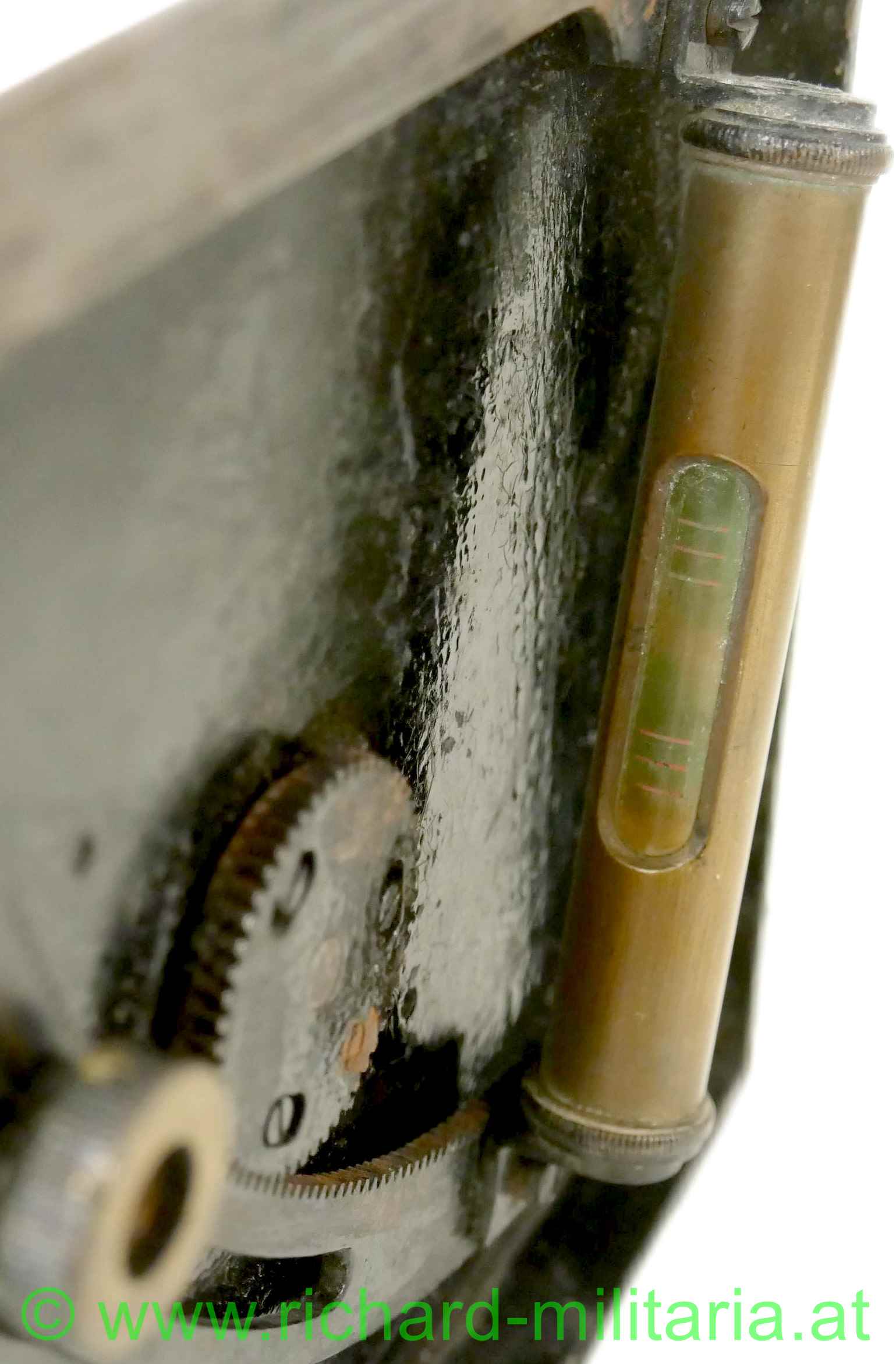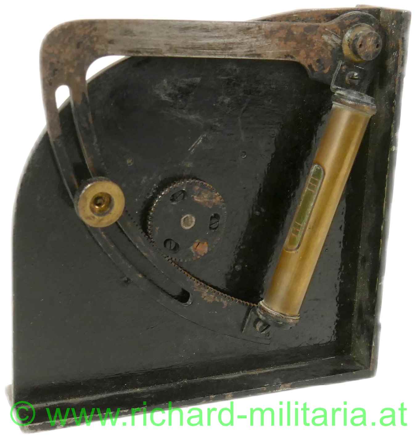 Winkelmesser - Entfernungteilung - 37mm M15 JG, Metall geschwärzt - frontseitig entlackt, k.u.k. Armeeabnahme: "Wn Adler 18 V", alle Teile gängig, Skalascheibe aus Messing; Nr. 10024, auf der Rückseite komplett mit Wasserwaage (!);
