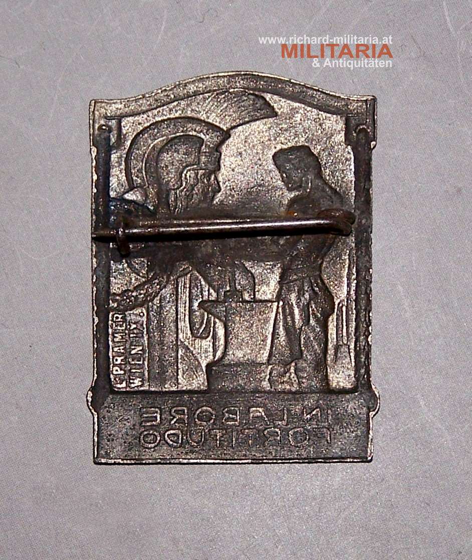 k.u.k. Abzeichen - "In Labore Fortitudo" - Pramer Firmenabzeichen; Tombakblech ursprünglich versilbert; revers Hersteller "L. Pramer Wien"; originales Nadelsystem;