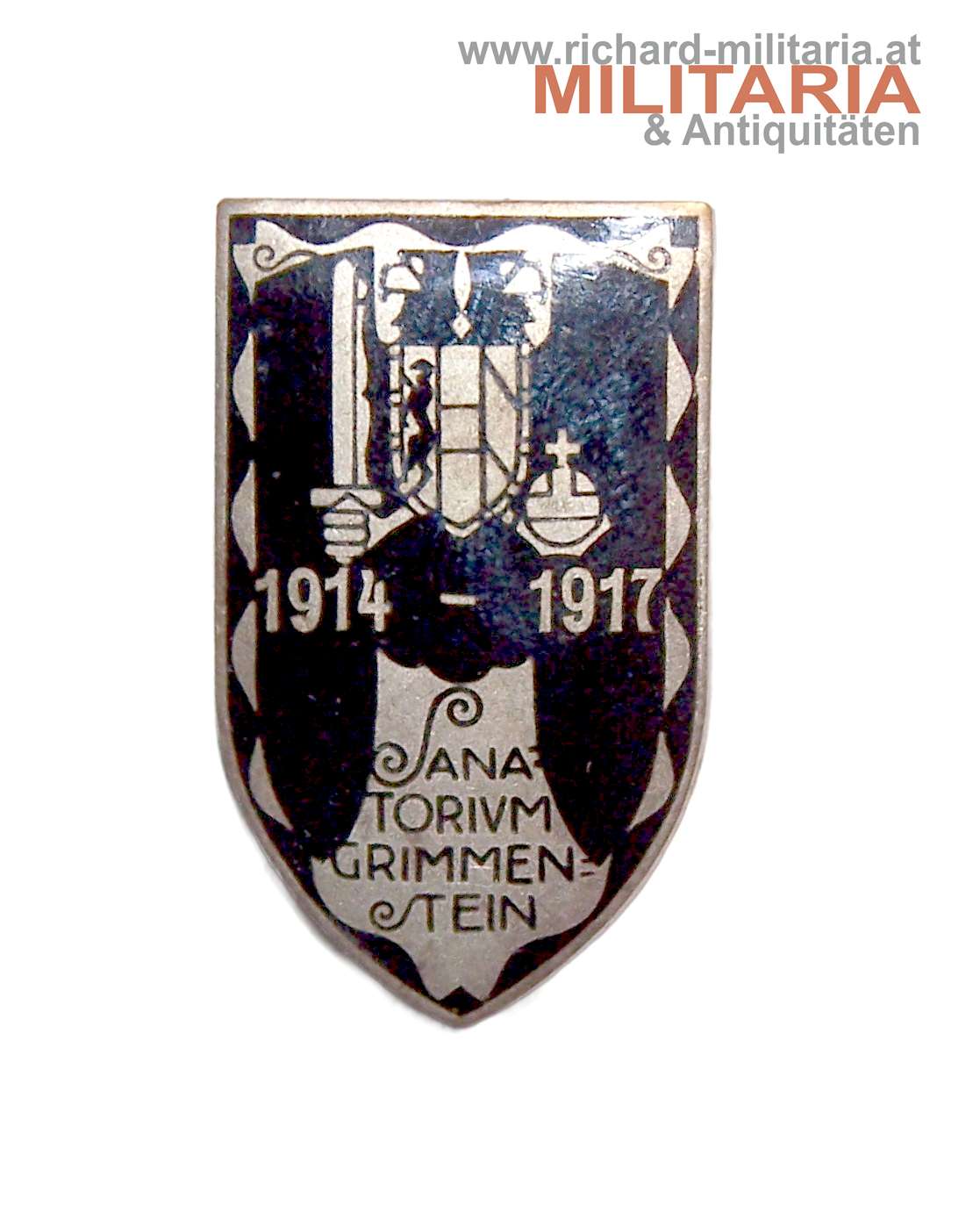 k.u.k. Abzeichen - Sanatorium Grimmenstein 1914-1917 - Knopflochtrageweise; Tombak teilweise emailliert; mit Hersteller revers;
