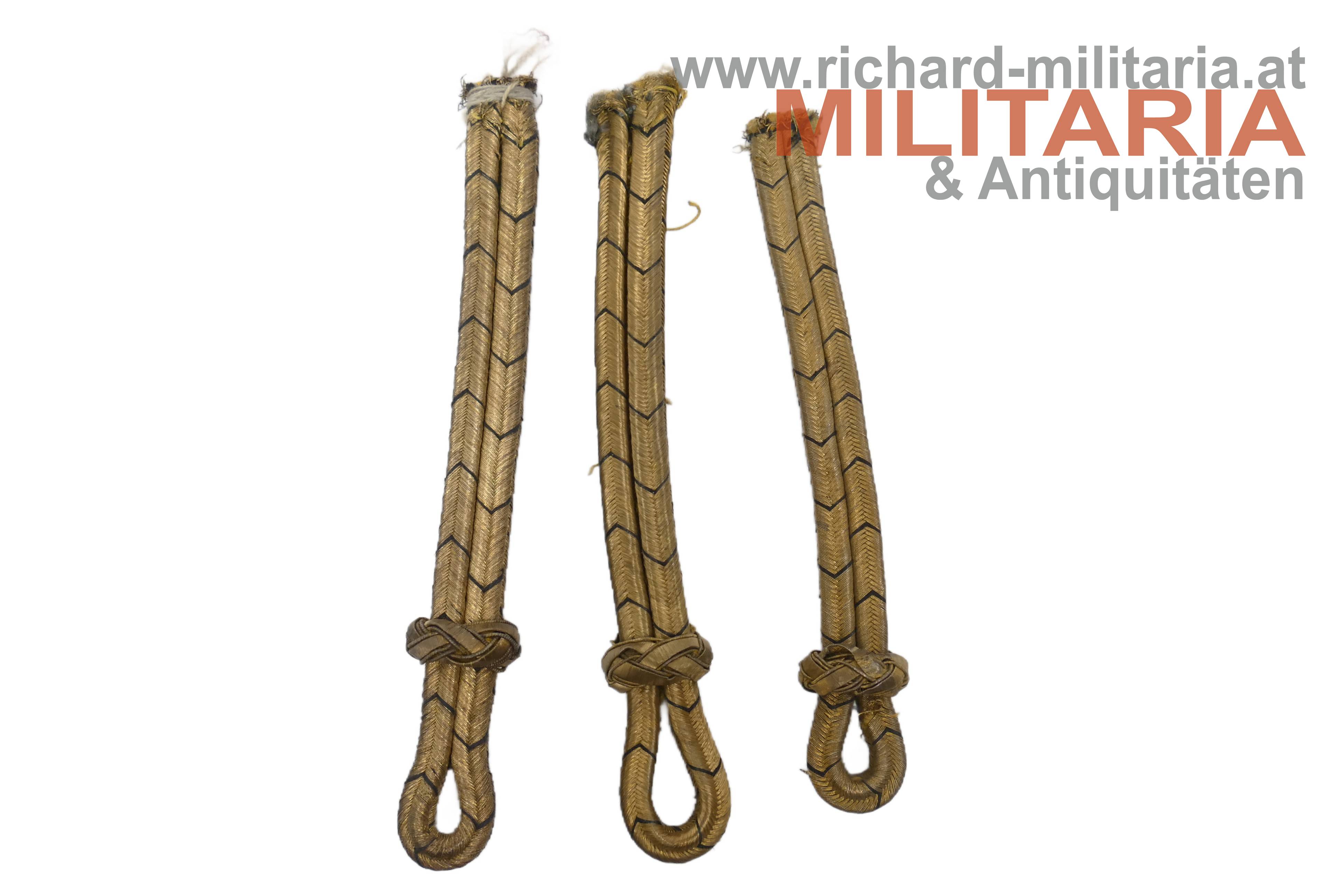k.u.k. Achselspange für Offiziere der Kavallerie oder Artillerie; schwarz durchwirkter Goldfadenschlingen mit Schuber;