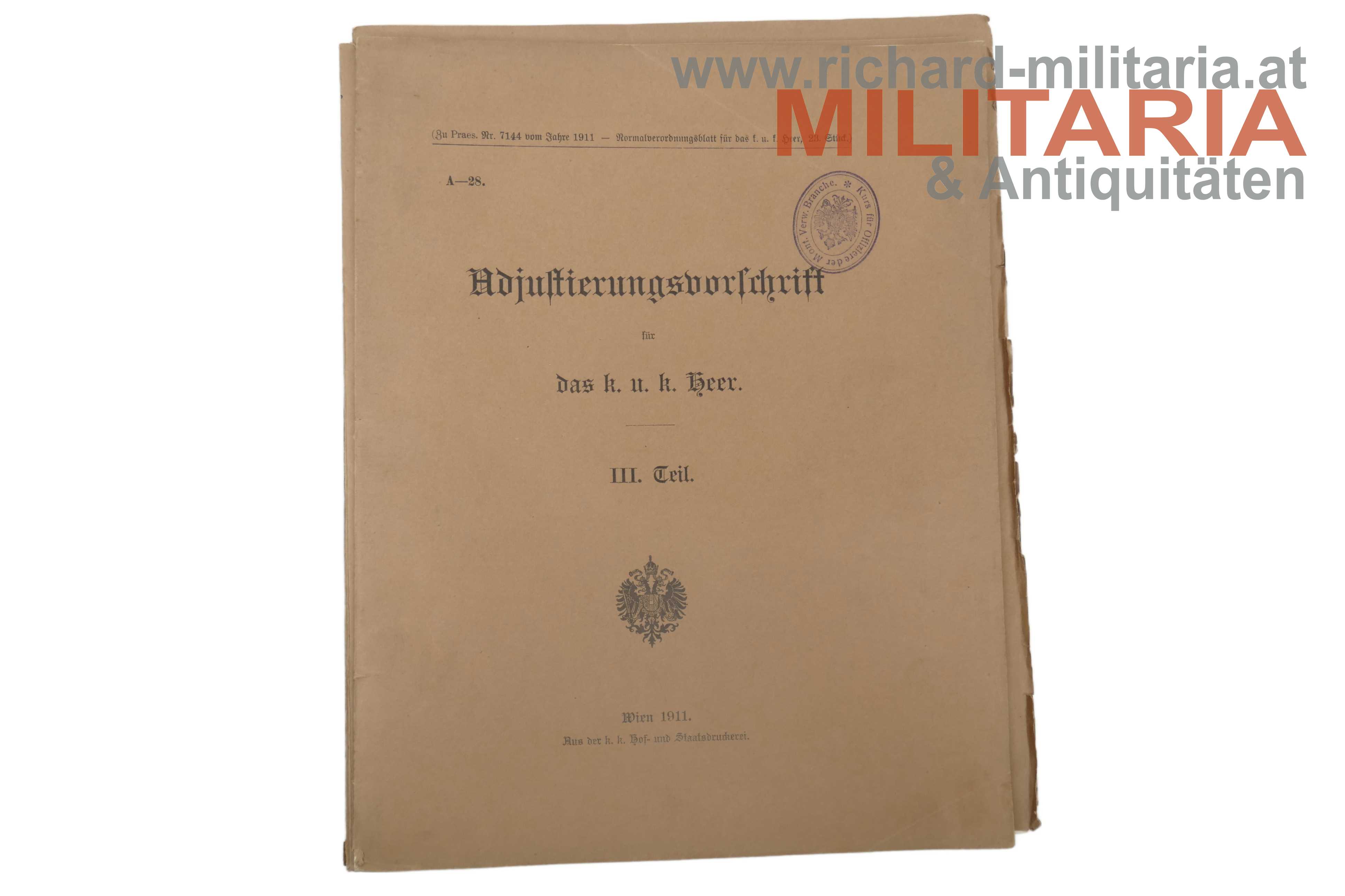 k.u.k. Adjustierungsvorschrift 1910/1911 - 7 Teile;