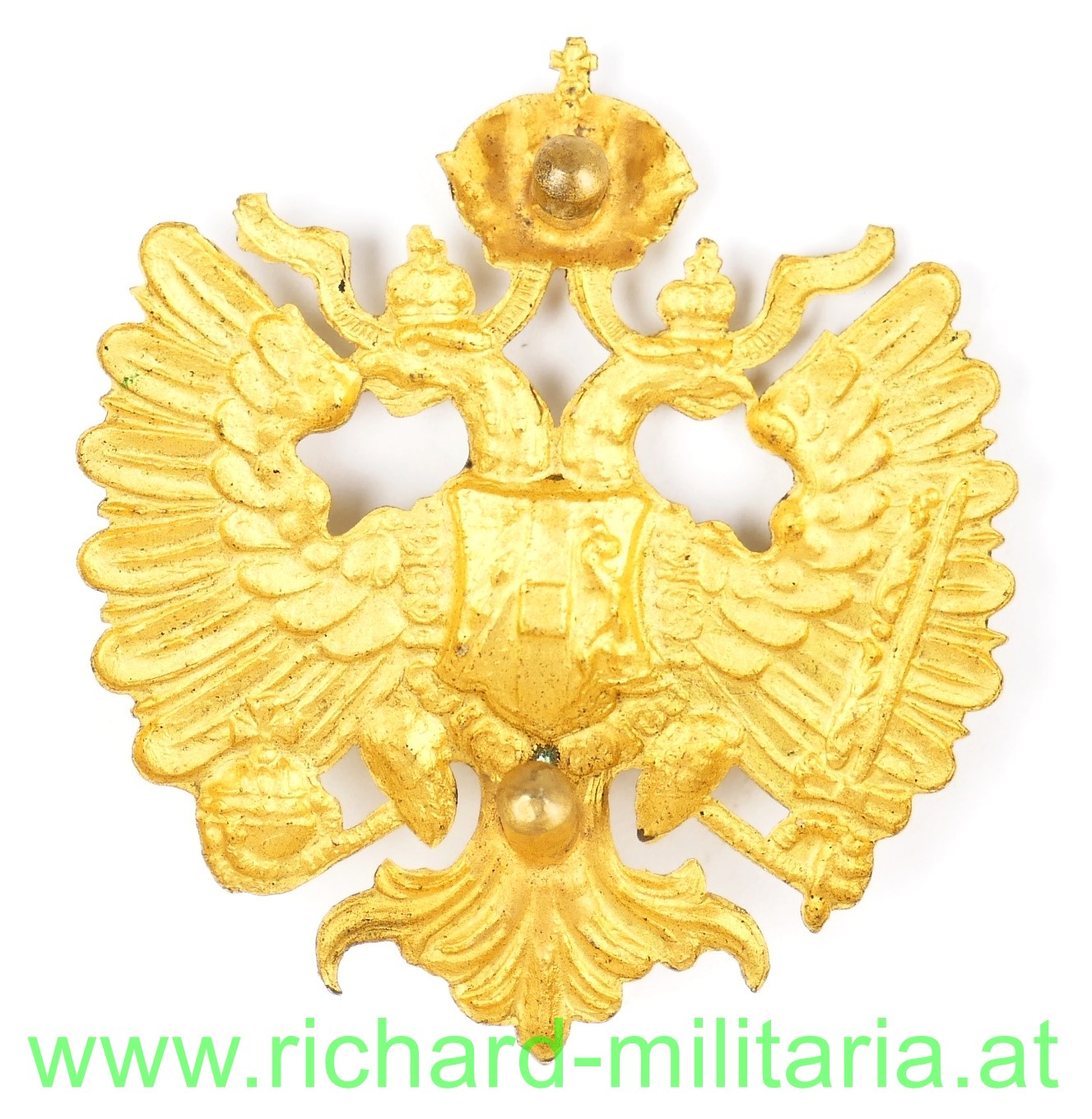 k.u.k. Adler für das Koppelschloss mit dem seltenen Drehverschluss; Tombak vergoldet, auf der Rückseite Vorrichtung für die "Dreharretierung";
