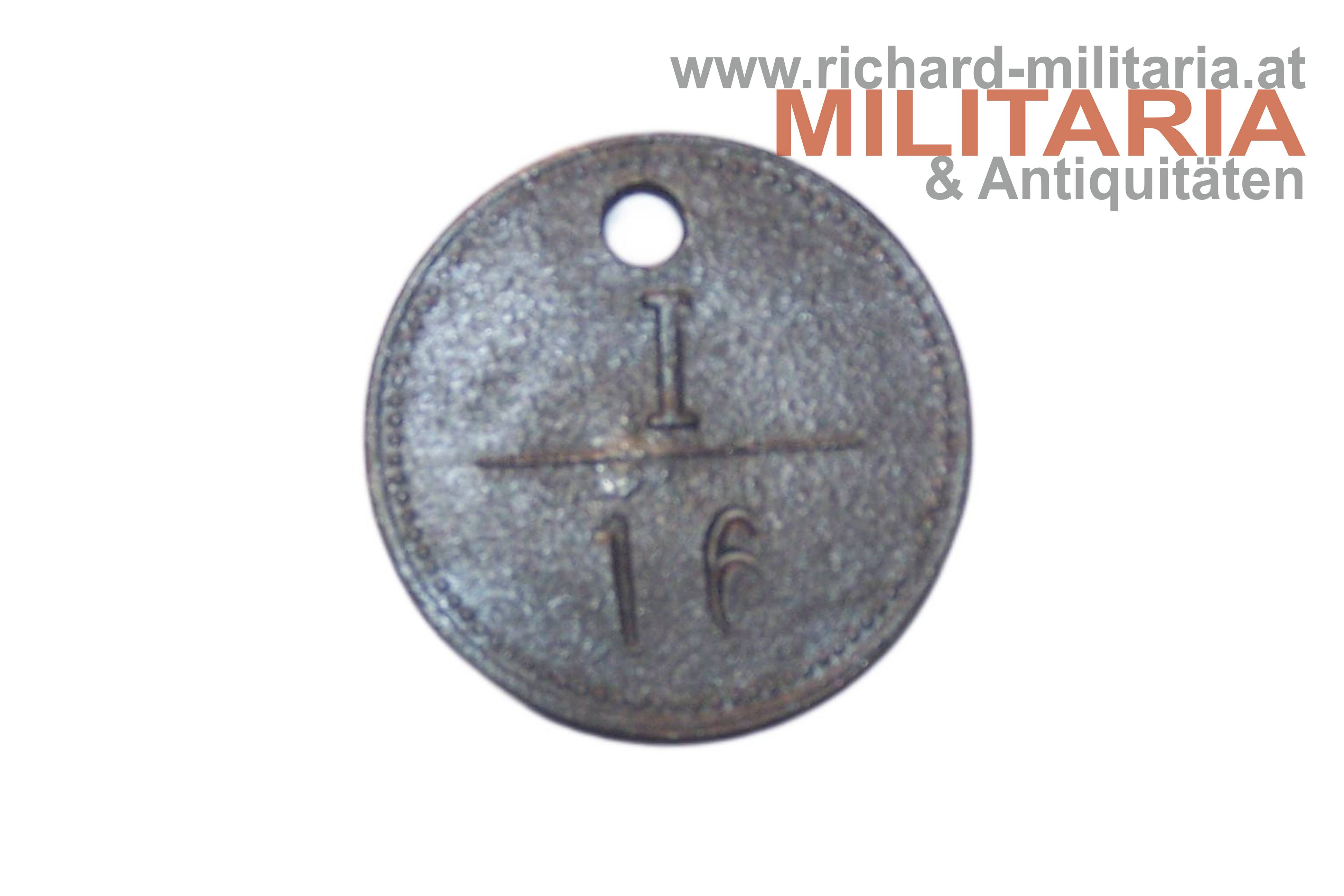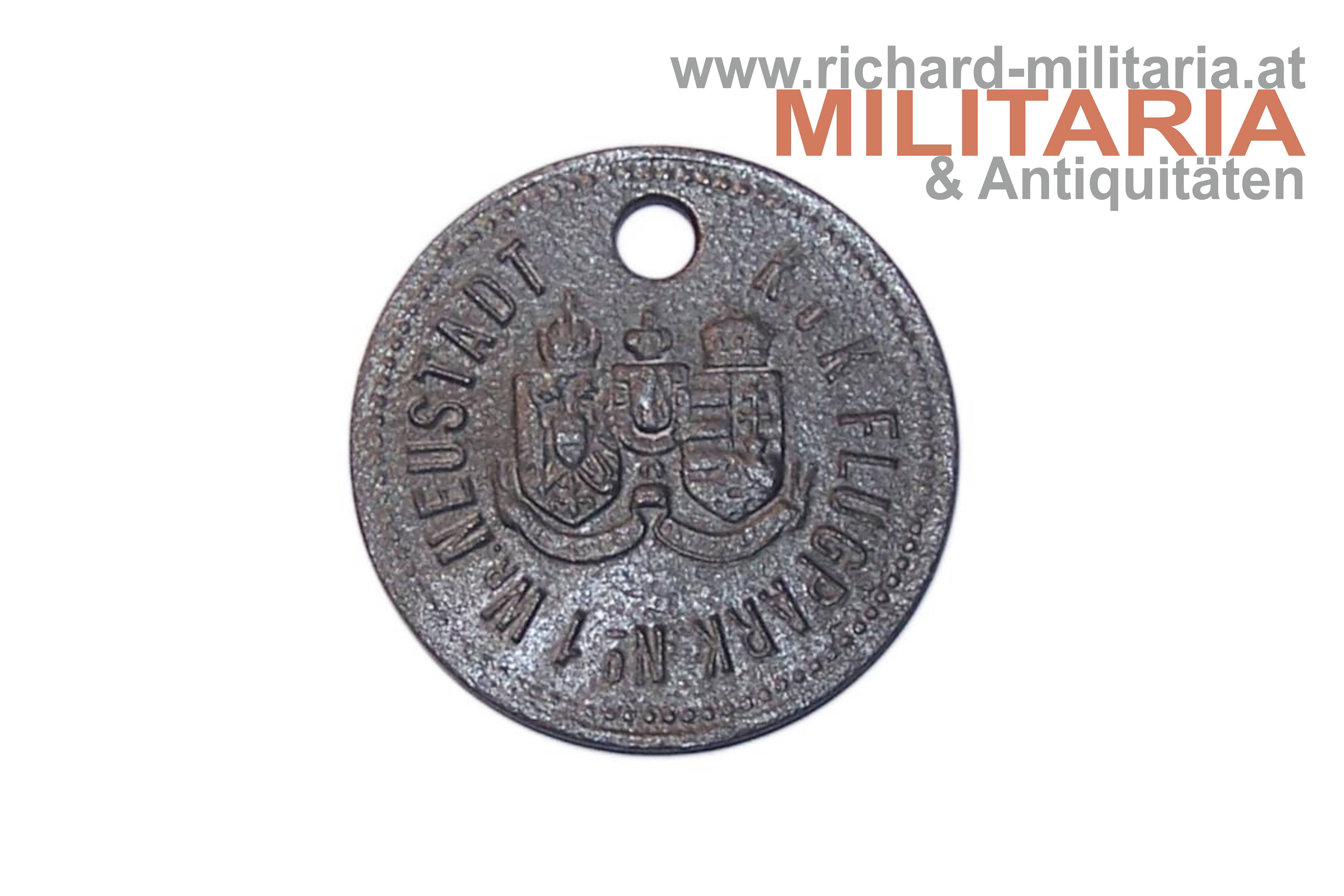 k.u.k. Anhänger - Flugpark No.1 Wiener Neustadt; Metall; avers mittig das gemeinsame k.u.k. Wappen; revers "I / 16";