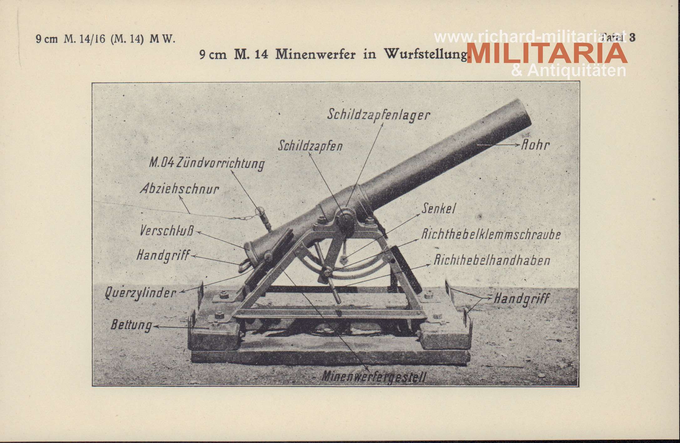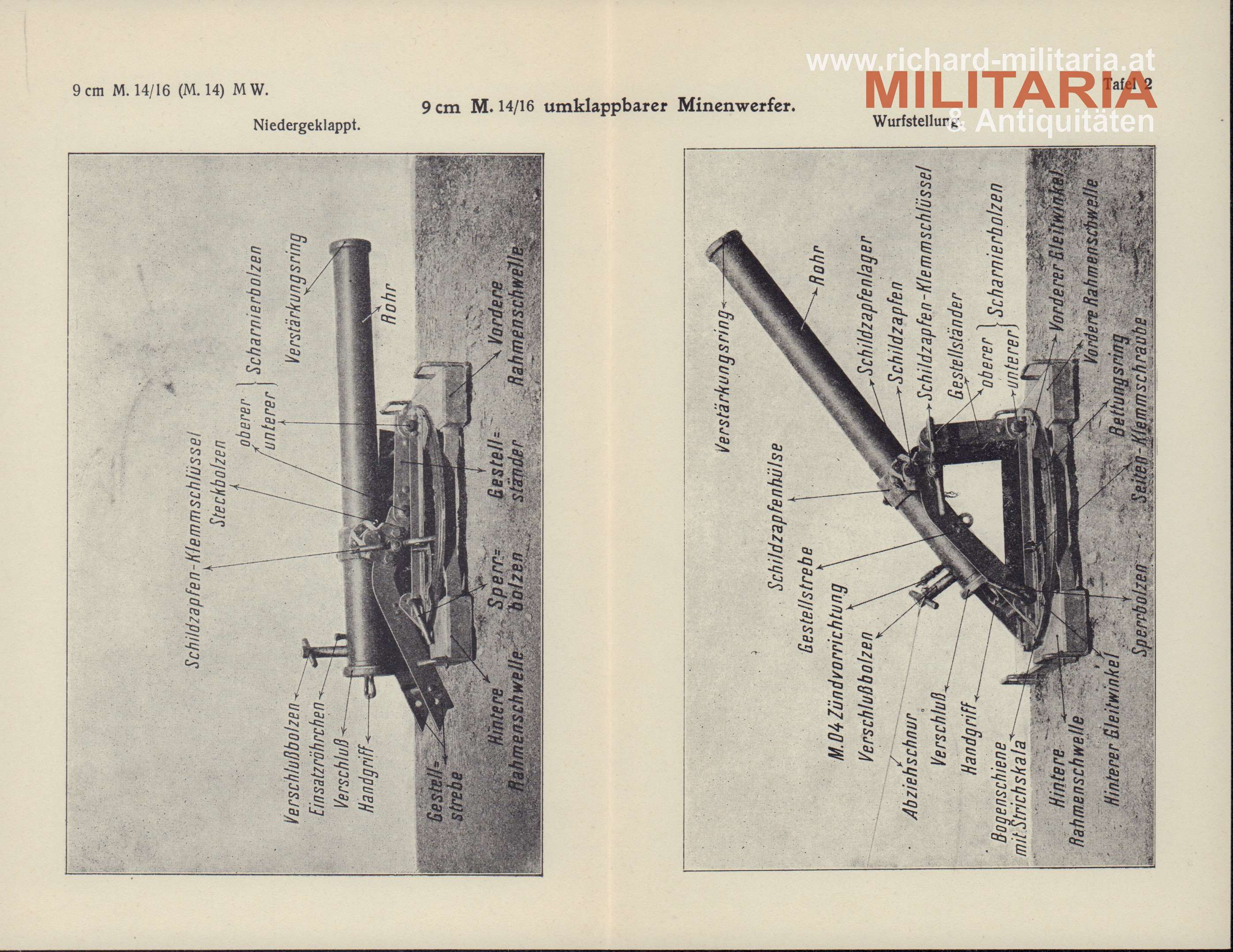 - eine zweite Beschreibung des Minenwerfers in Wurfstellung (leicht abweichend)