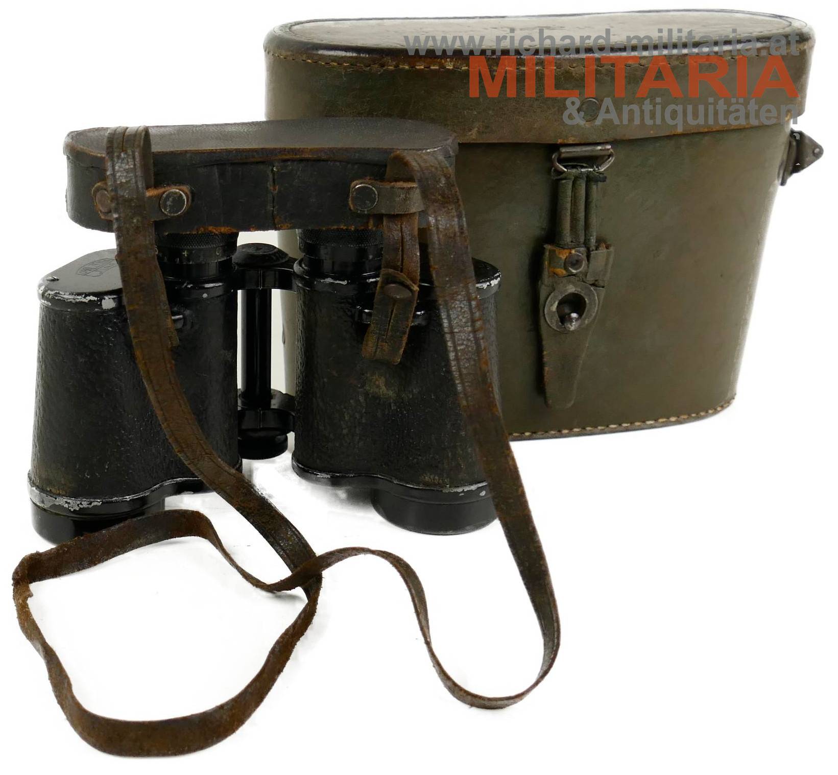 k.u.k. Armeefeldstecher Carl Zeiss Jena 6x30 mit Köcher - Abnahmestempel "Wn (Doppeladler) 16 V"