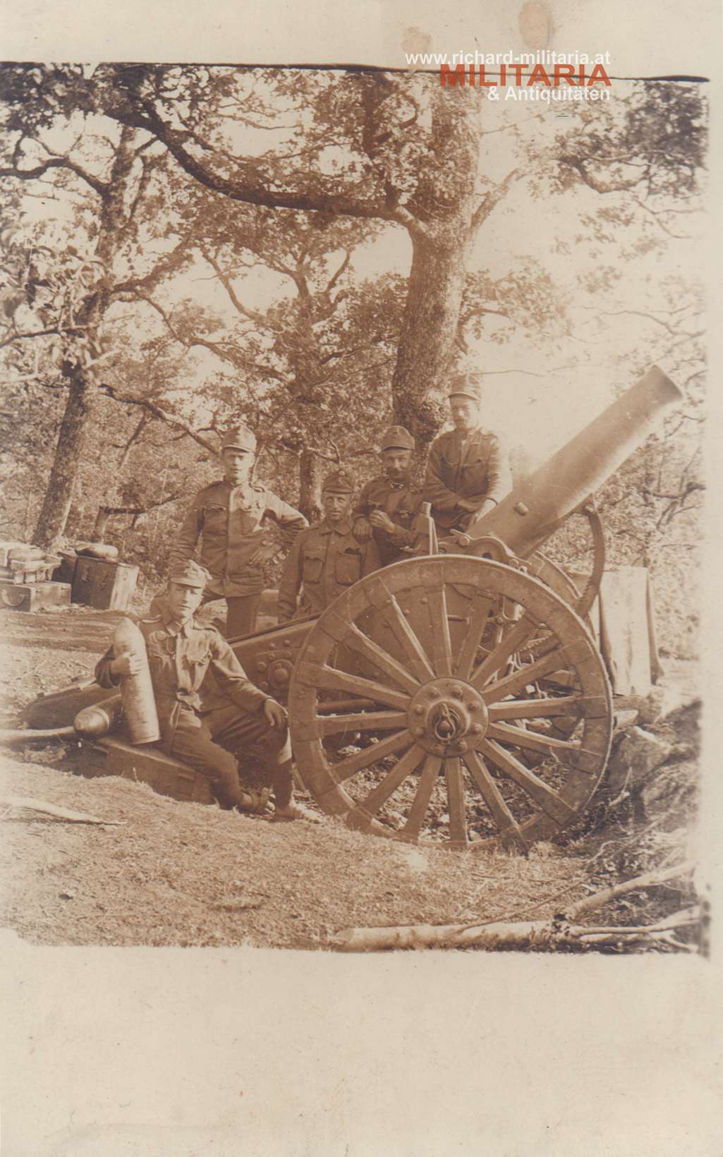k.u.k. Artilleristen mit einem Geschütz; Foto in Postkartenformat