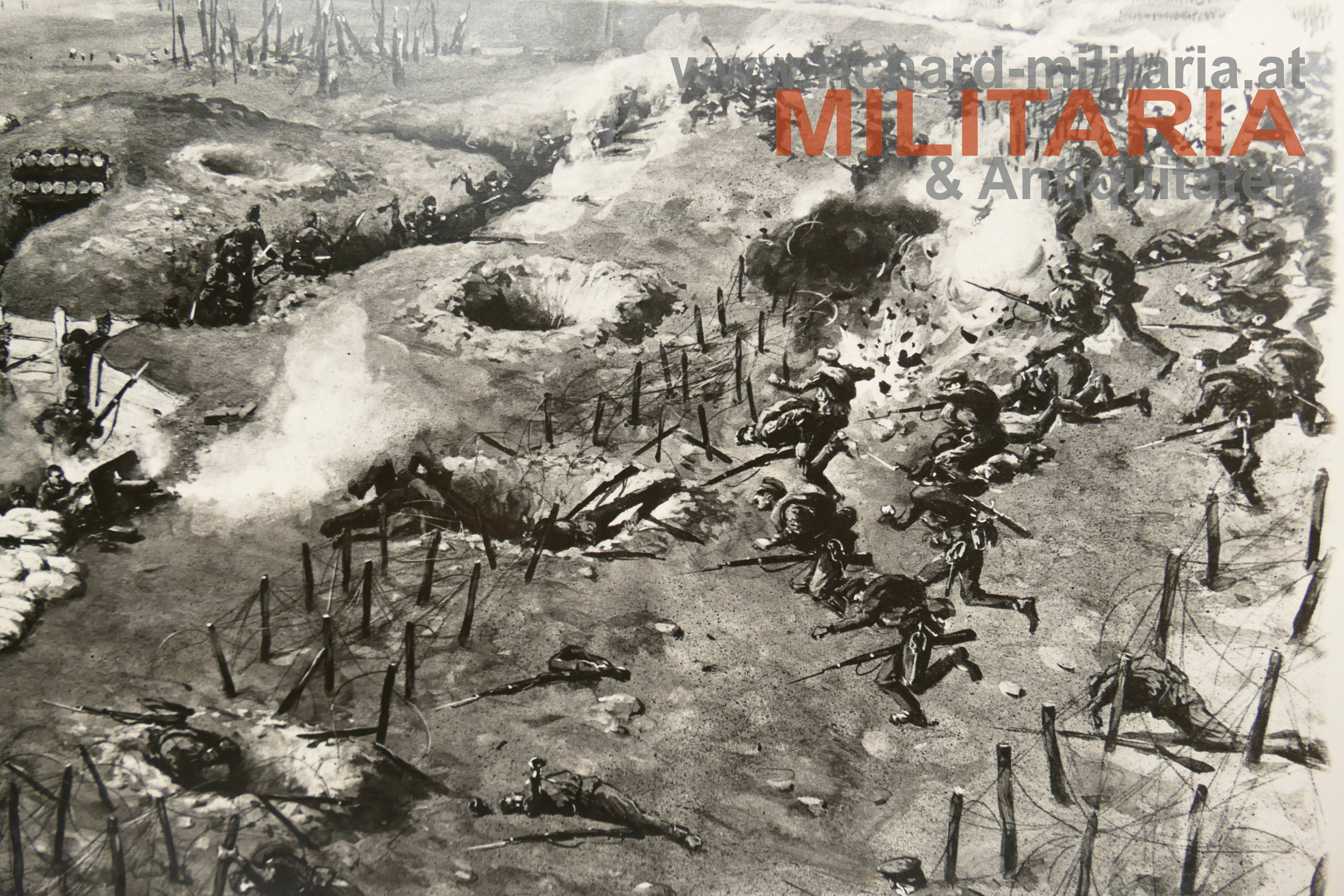 k.u.k. Bilddruck aus den schweren Stellungskämpfen am Stochod im September 1916 von späteren k.u.k. Pressezeichner Theo Matejko; großformatig;