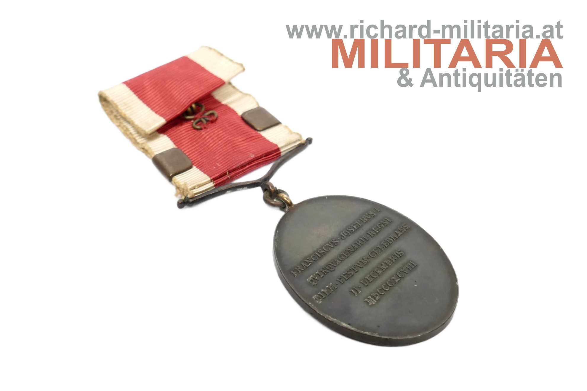 k.u.k. Bronzene Jubiläums-Hofmedaille; Bronze; am originalen Band mit Bandspange für Zivilisten;