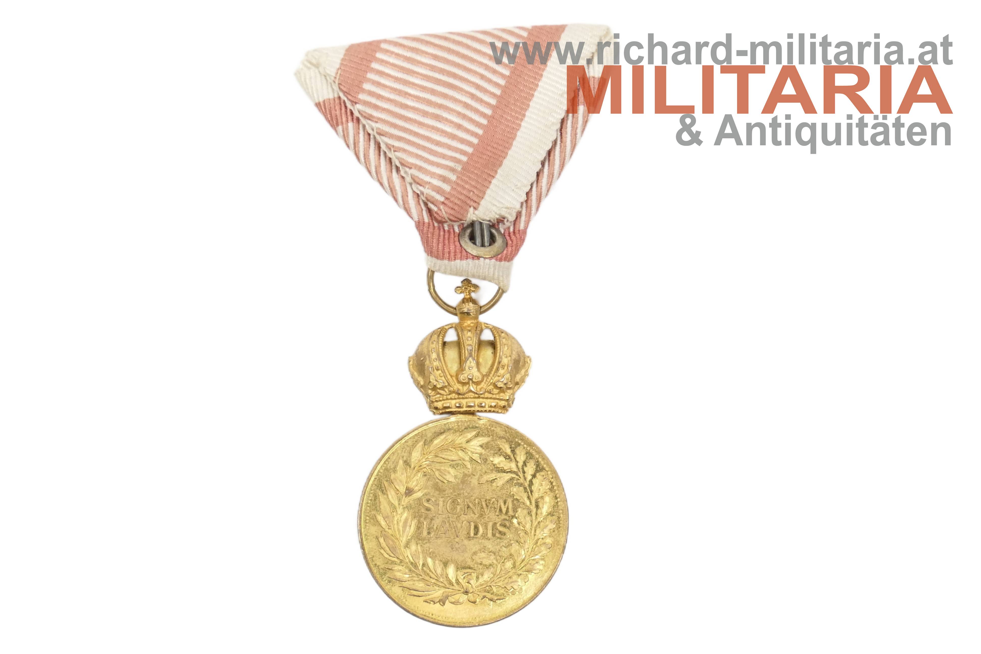k.u.k. Bronzene Militärverdienstmedaille Kaiser Franz Joseph mit Schwertern - STEMPELGLANZ; Bronze vergoldet; am Band zum Militärverdienstkreuz mit Schwertern; nur minimalste Tragespuren!