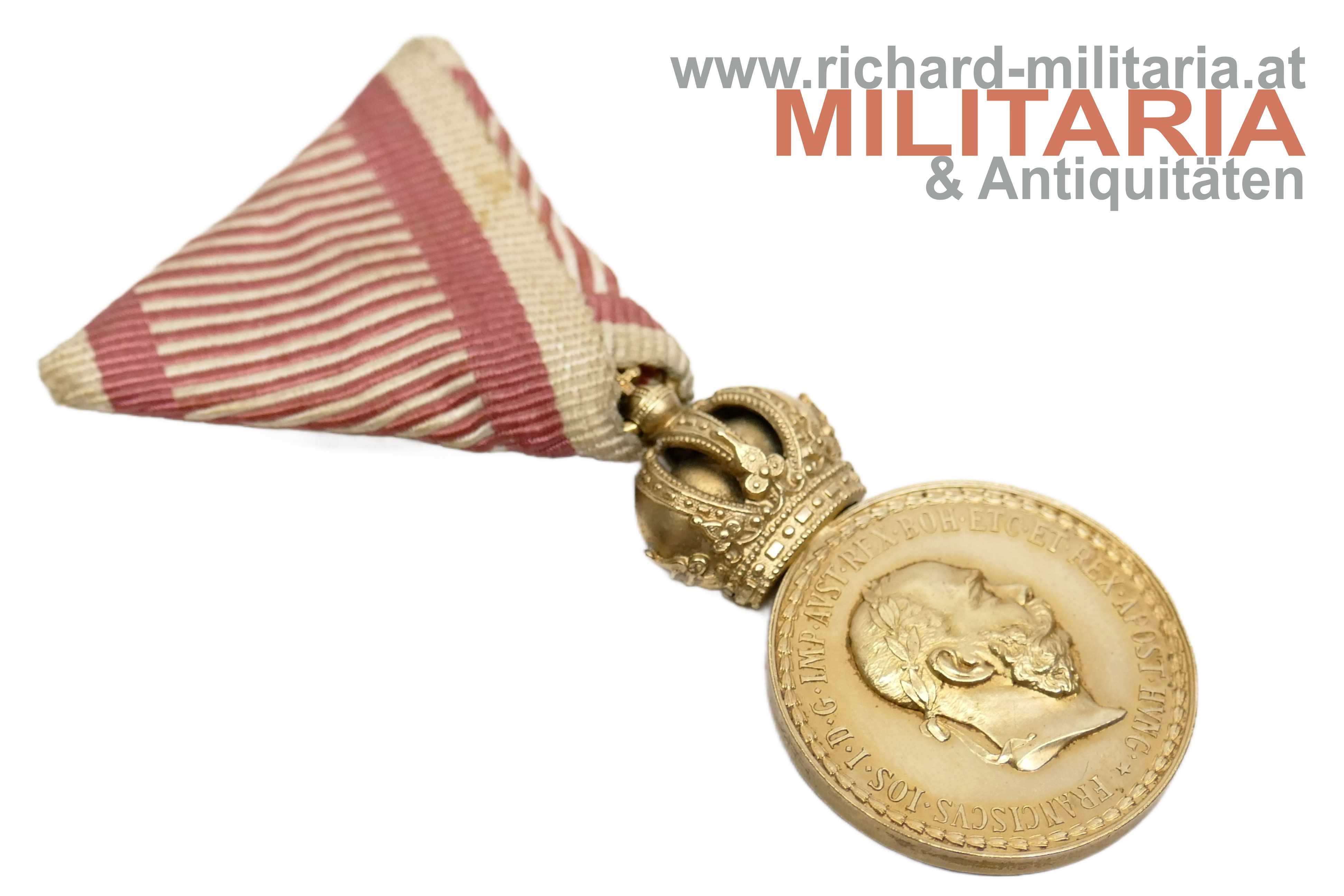 k.u.k. Bronzenes Signum Laudis - Kaiser Franz Joseph; Bronze vergoldet; am Band zum Militärverdienstkreuz;