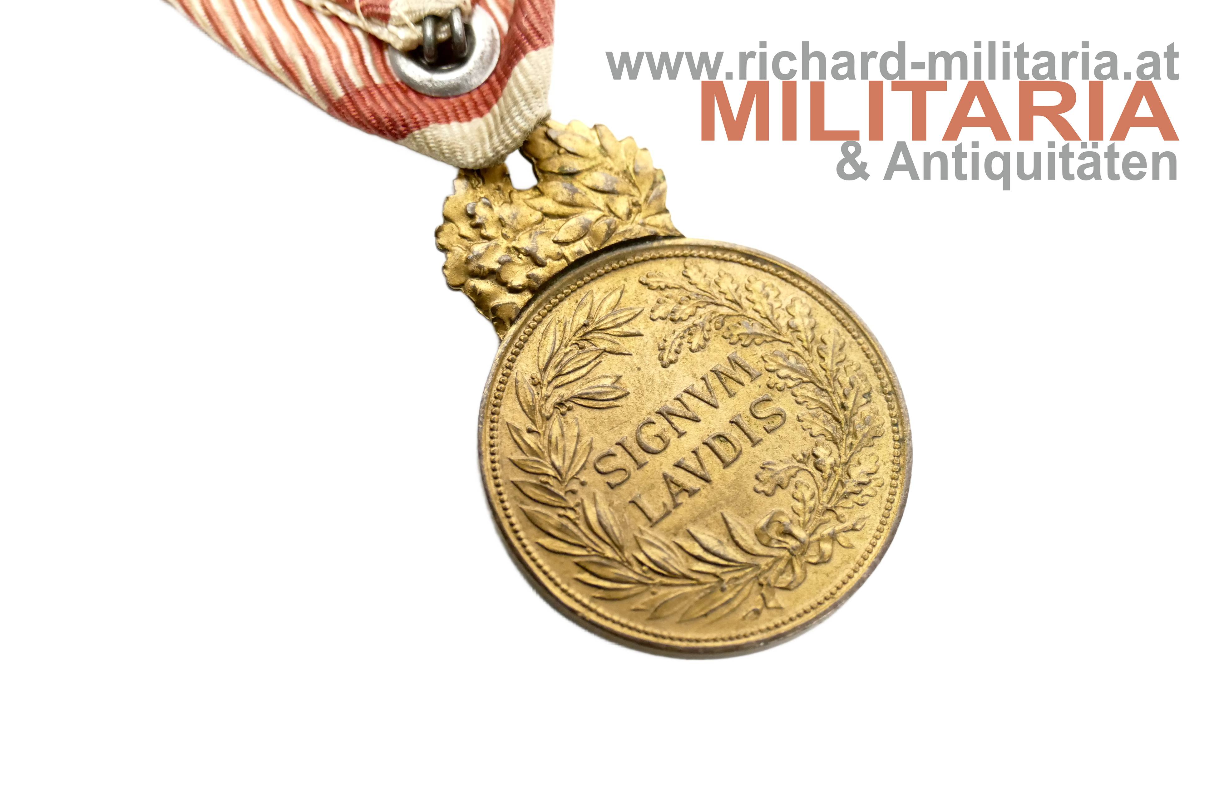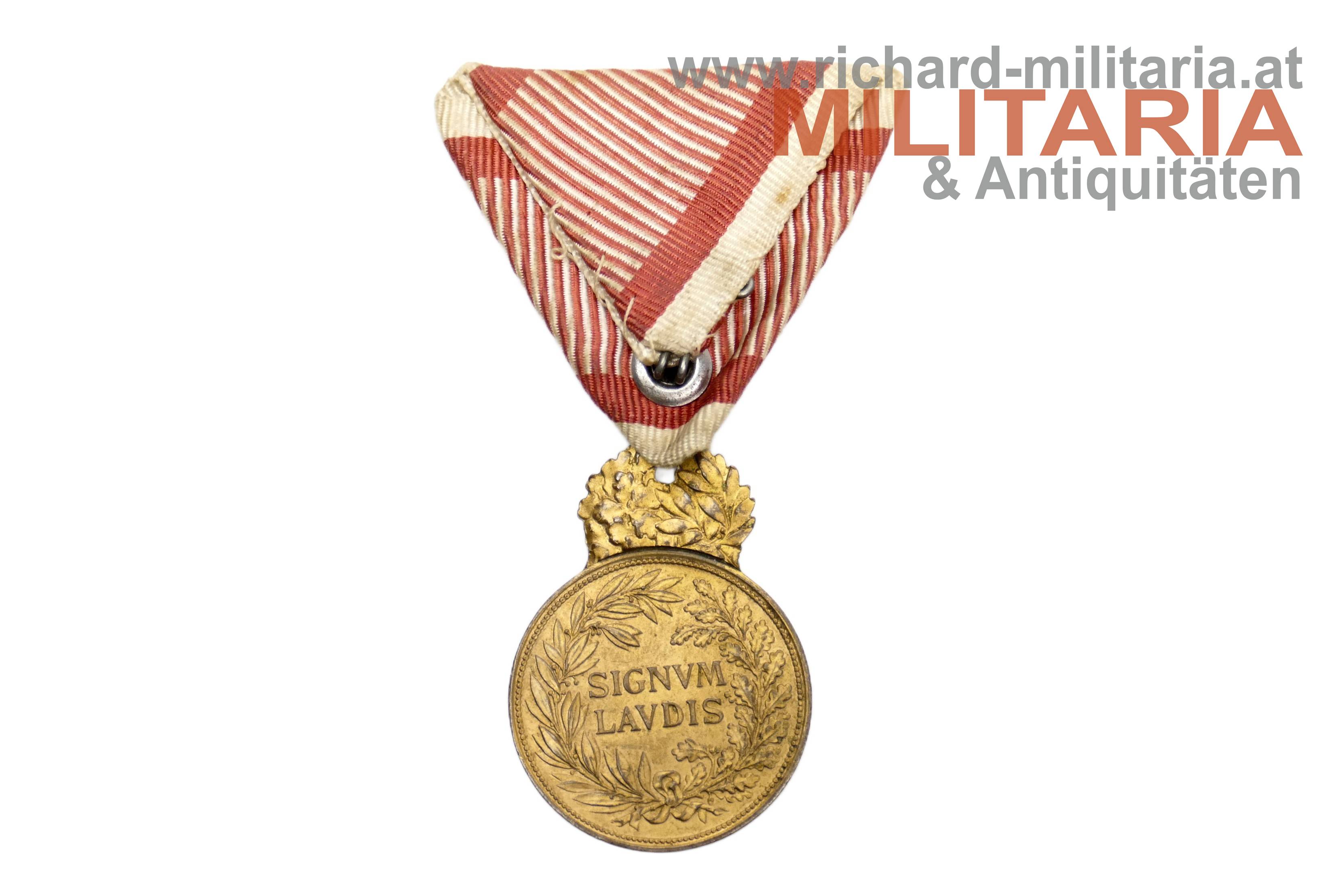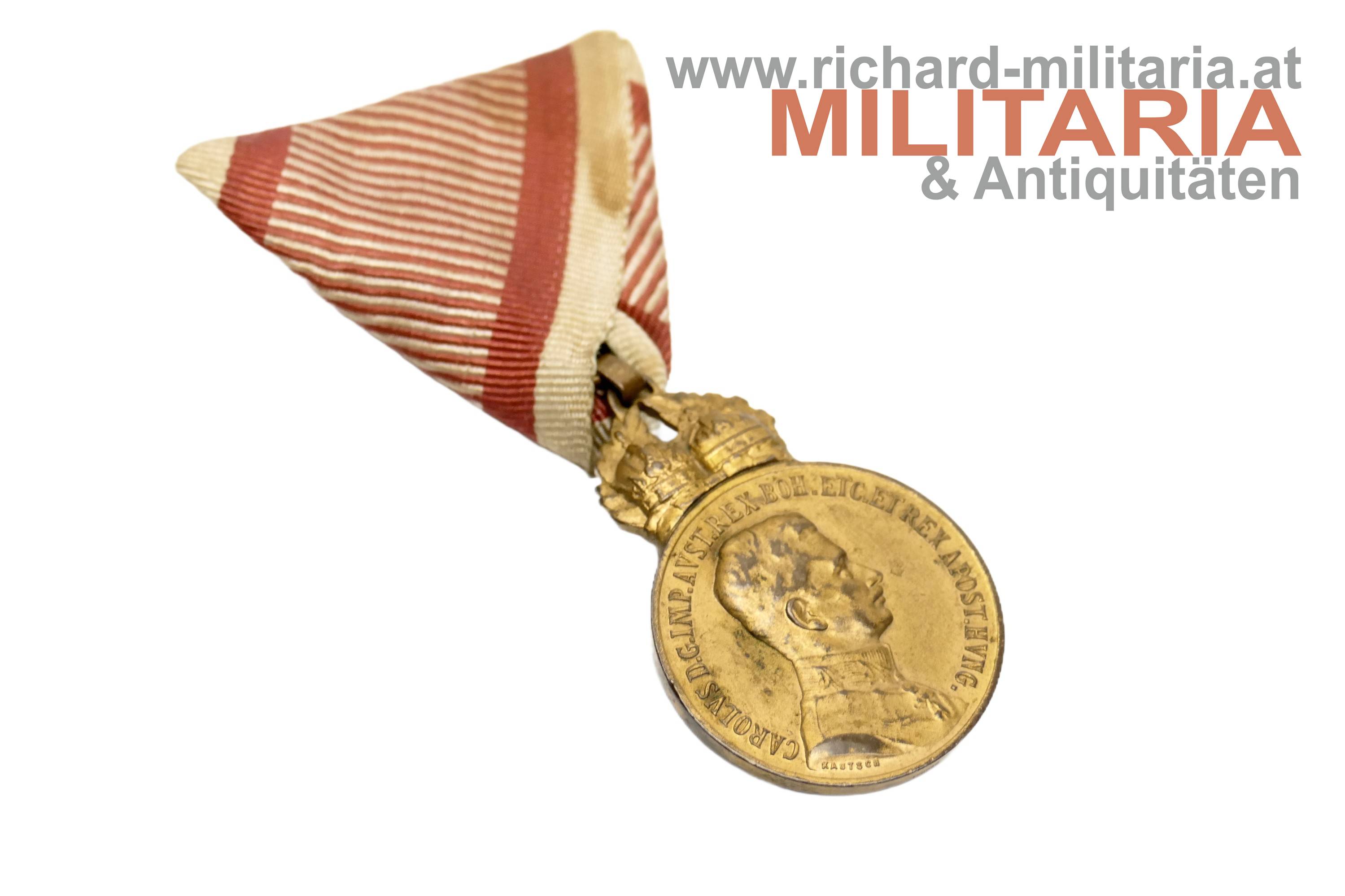 k.u.k. Bronzenes Signum Laudis - Kaiser Karl; Bronze vergoldet; Randpunzierung "BRONZE"; am etwas ausgewaschenen Kriegsband;